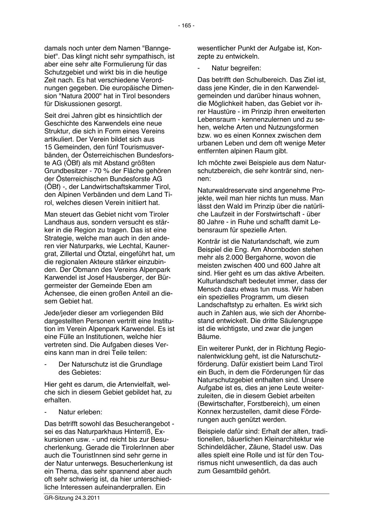Zeit nach. Es hat verschiedene Verordnungen gegeben. Die europäische Dimension "Natura 2000" hat in Tirol besonders