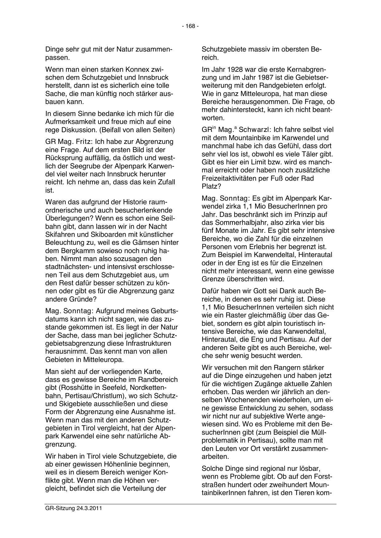 Wenn man einen starken Konnex zwischen dem Schutzgebiet und Innsbruck