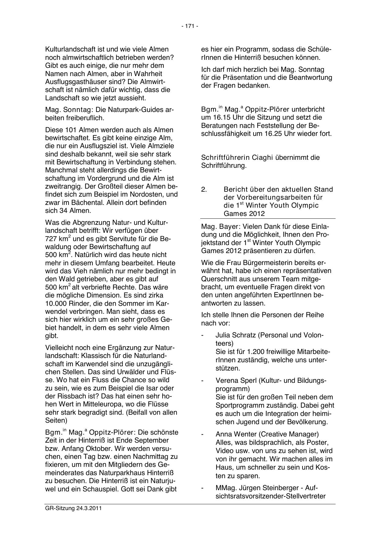 Mag. Bayer: Vielen Dank für diese Einladung und die Möglichkeit, Ihnen den Projektstand der 1st Winter Youth Olympic