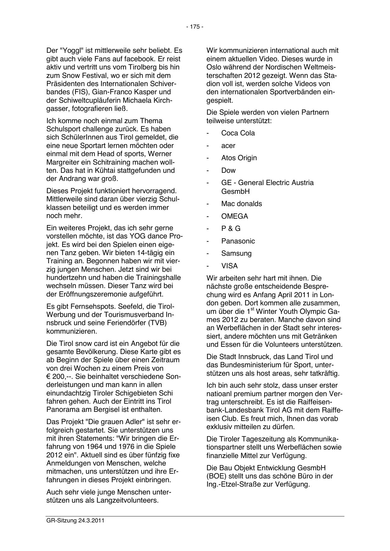 um über die 1st Winter Youth Olympic Games 2012 zu beraten. Manche davon sind