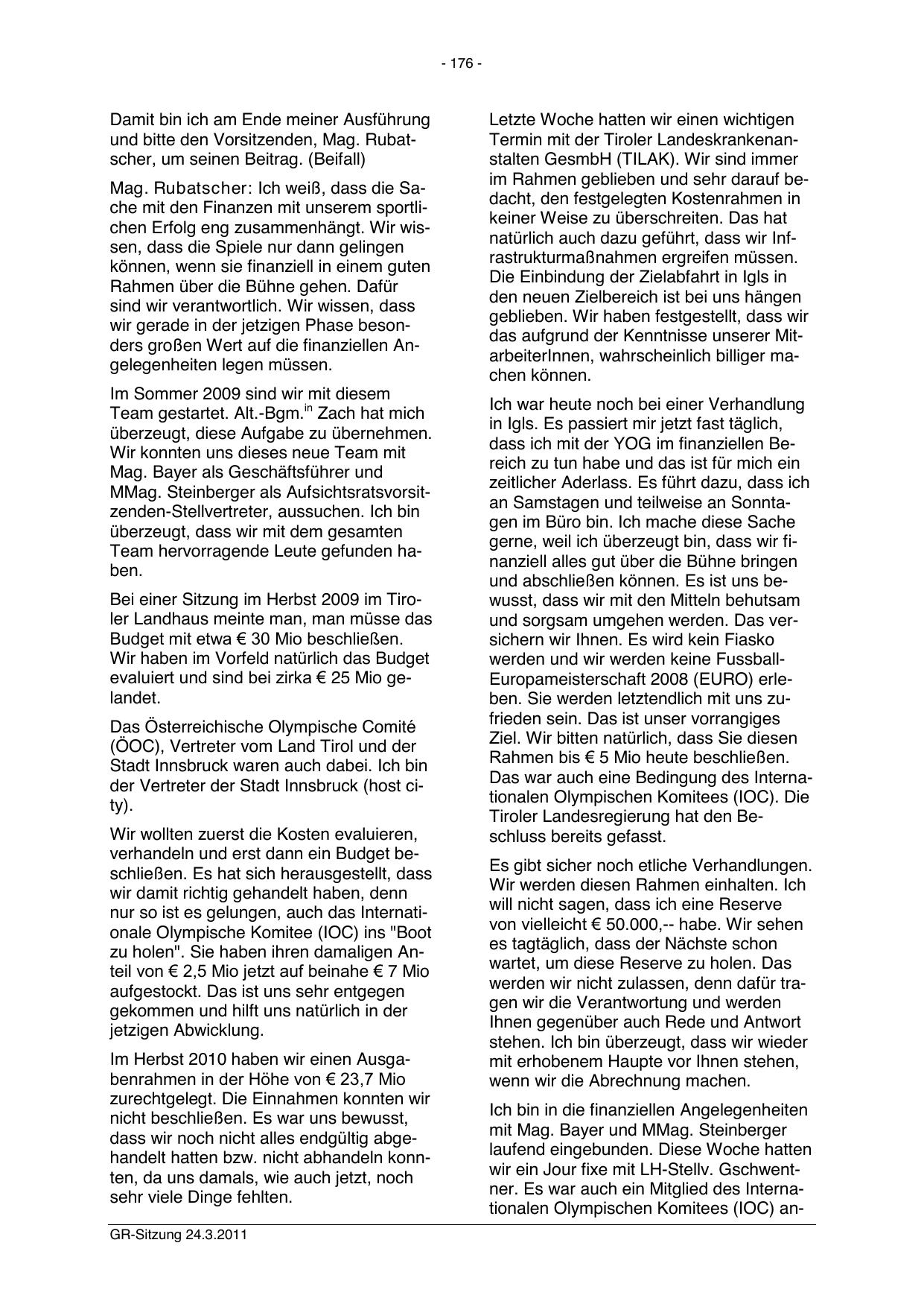 Mag. Rubatscher: Ich weiß, dass die Sache mit den Finanzen mit unserem sportlichen Erfolg eng zusammenhängt. Wir wissen, dass die Spiele nur dann gelingen