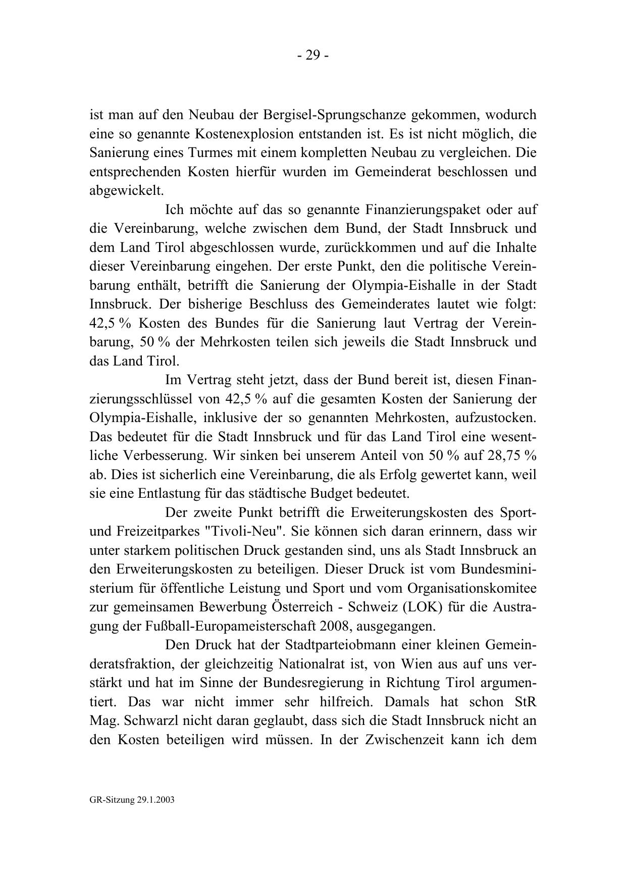 Mag. Schwarzl nicht daran geglaubt, dass sich die Stadt Innsbruck nicht an