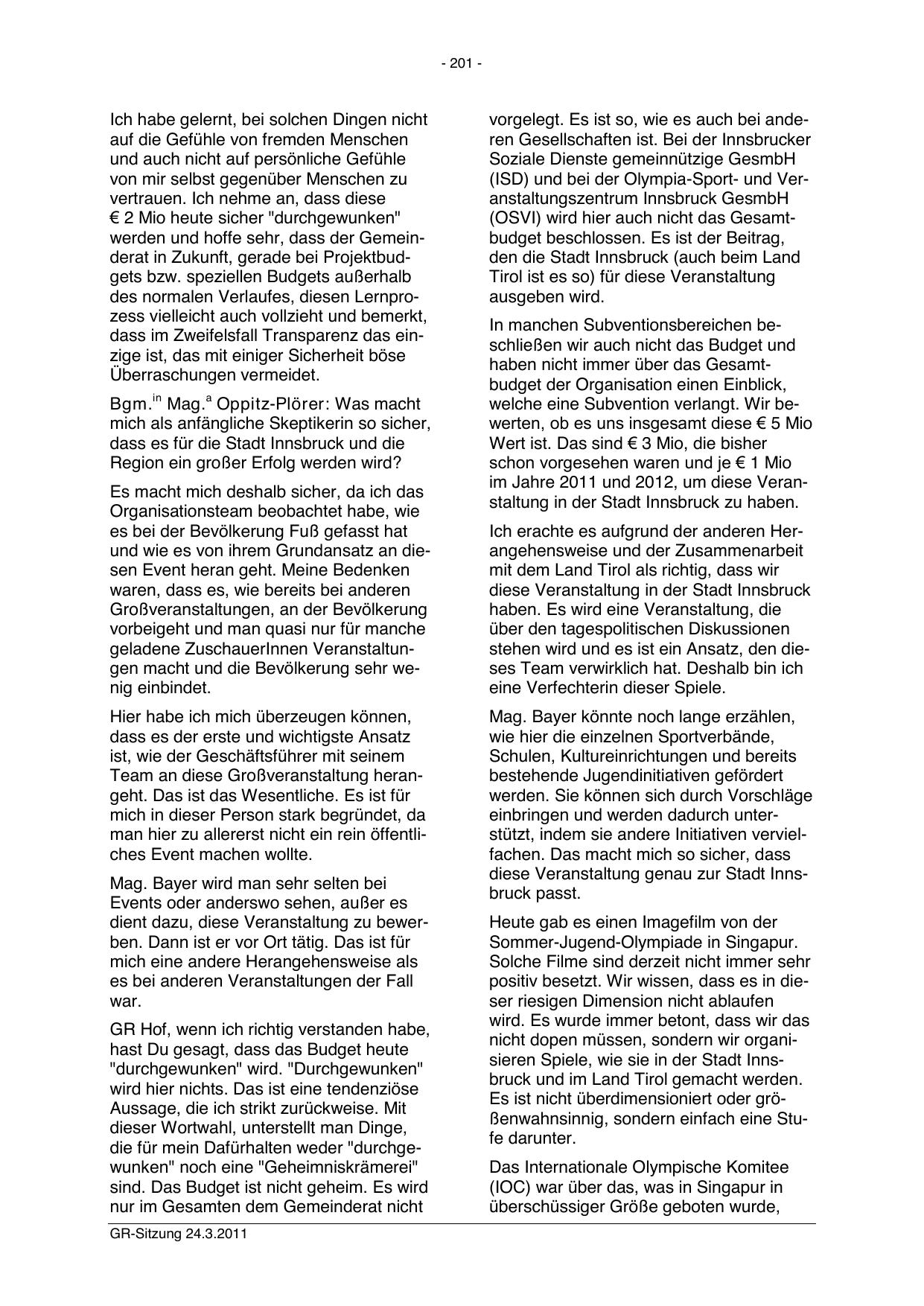 nicht dopen müssen, sondern wir organisieren Spiele, wie sie in der Stadt Innsbruck und im Land Tirol gemacht werden.