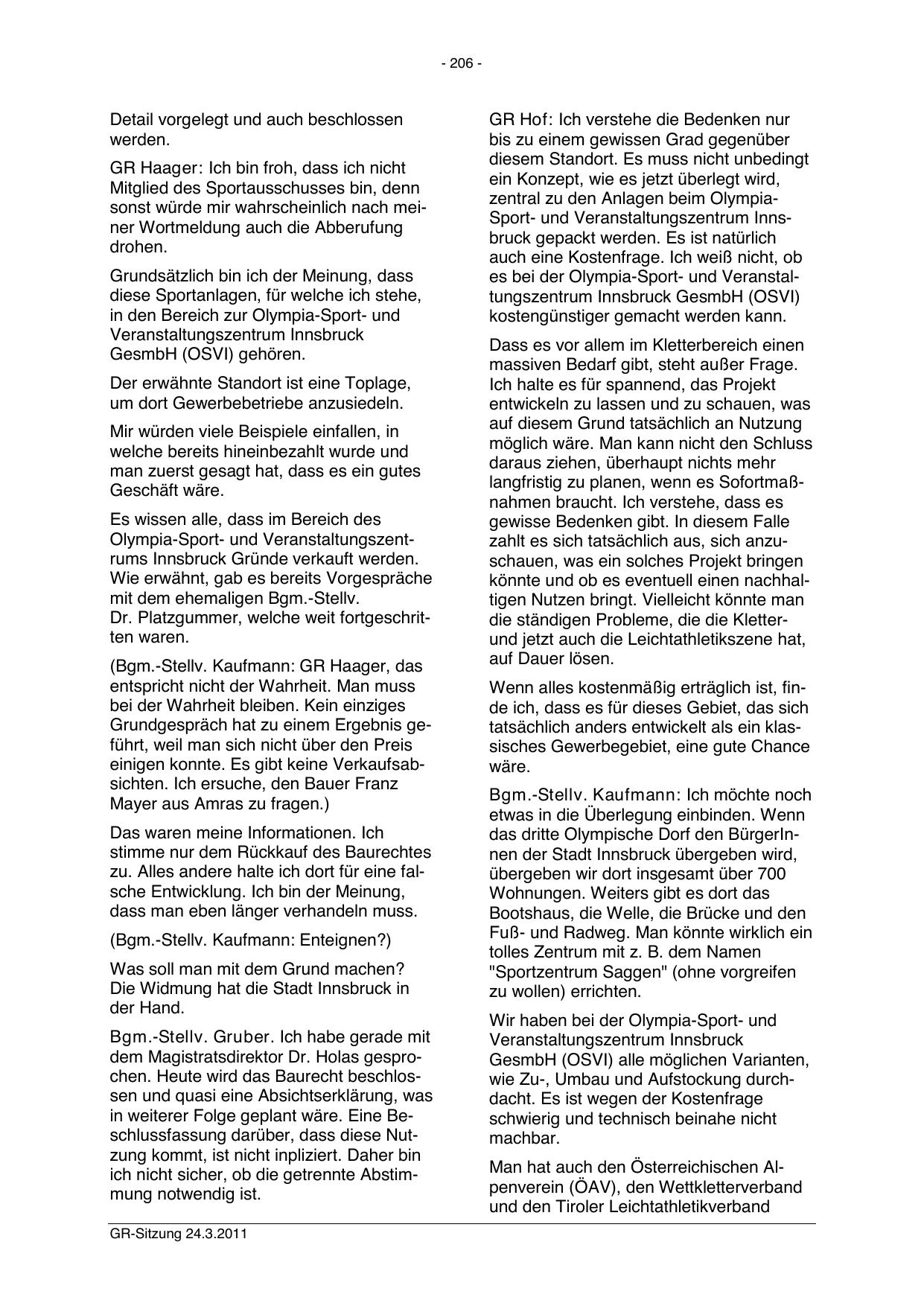 Olympia-Sport- und Veranstaltungszentrums Innsbruck Gründe verkauft werden.