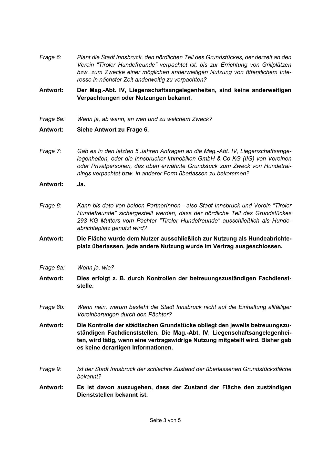 Ist der Stadt Innsbruck der schlechte Zustand der überlassenen Grundstücksfläche