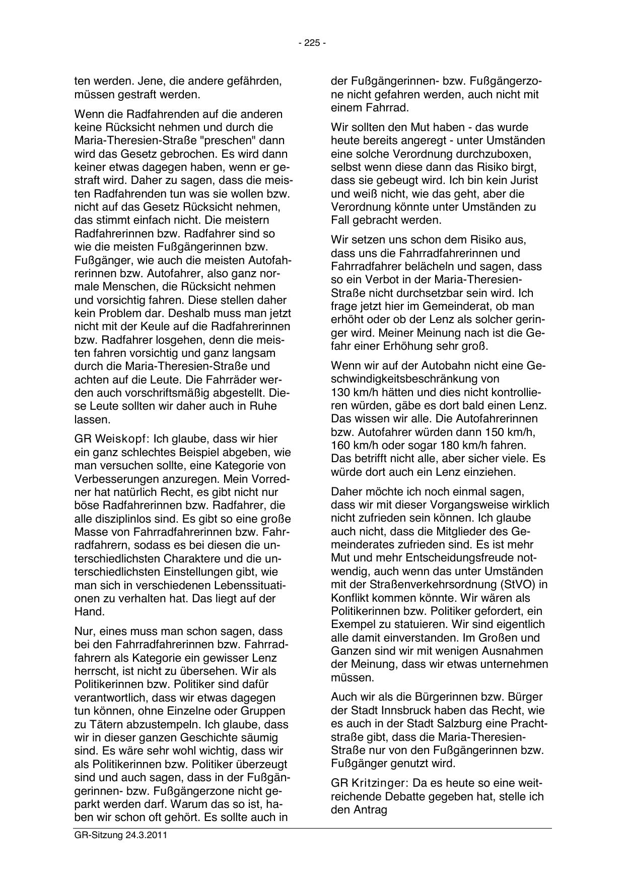 so ein Verbot in der Maria-TheresienStraße nicht durchsetzbar sein wird. Ich