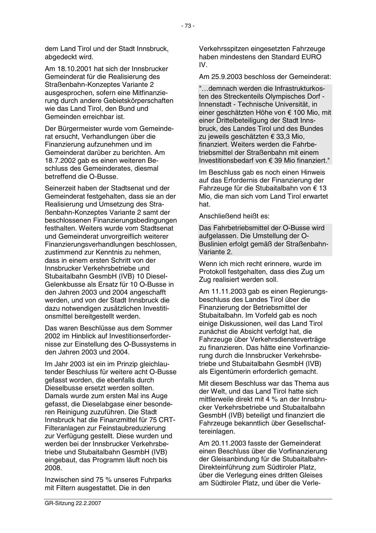 zu finanzieren. Das hätte eine Vorfinanzierung durch die Innsbrucker Verkehrsbetriebe und Stubaitalbahn GesmbH (IVB)