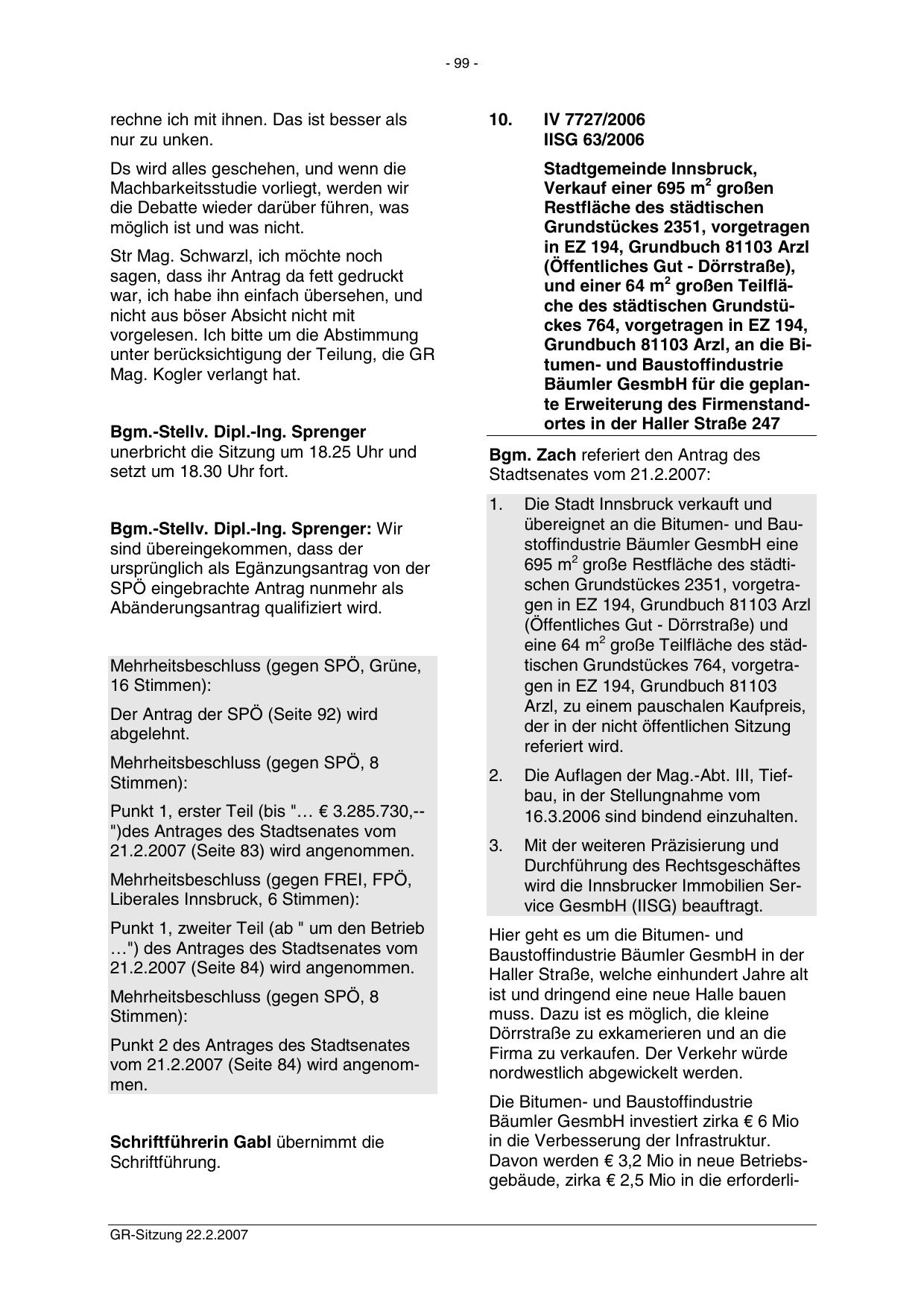 vom 21.2.2007 (Seite 84) wird angenommen.