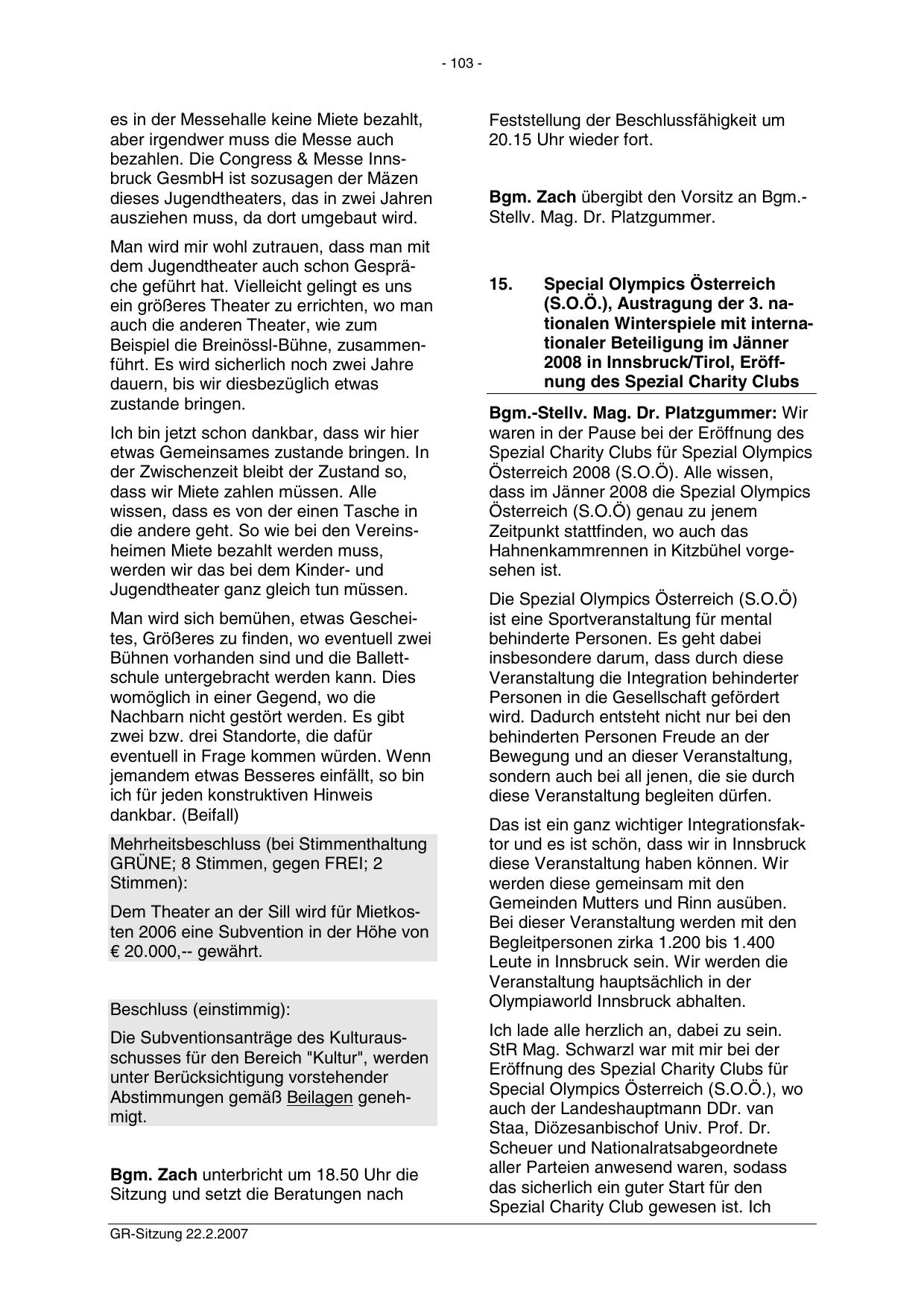 Bgm. Zach unterbricht um 18.50 Uhr die