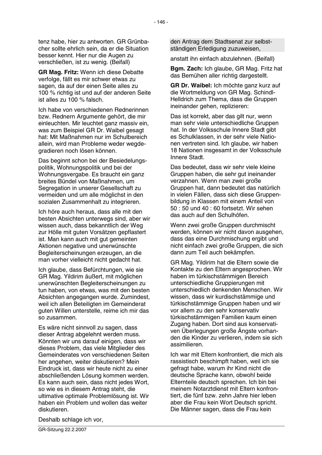 Bgm. Zach: Ich glaube, GR Mag. Fritz hat