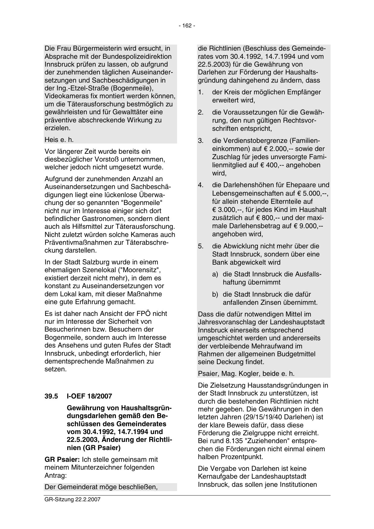 22.5.2003, Änderung der Richtlinien (GR Psaier)