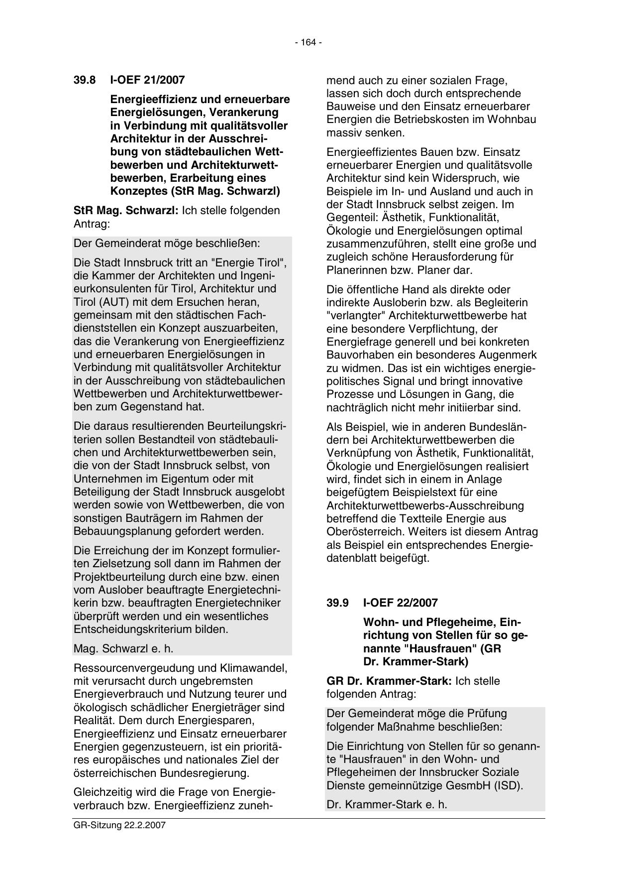 Gleichzeitig wird die Frage von Energieverbrauch bzw. Energieeffizienz zunehGR-Sitzung 22.2.2007