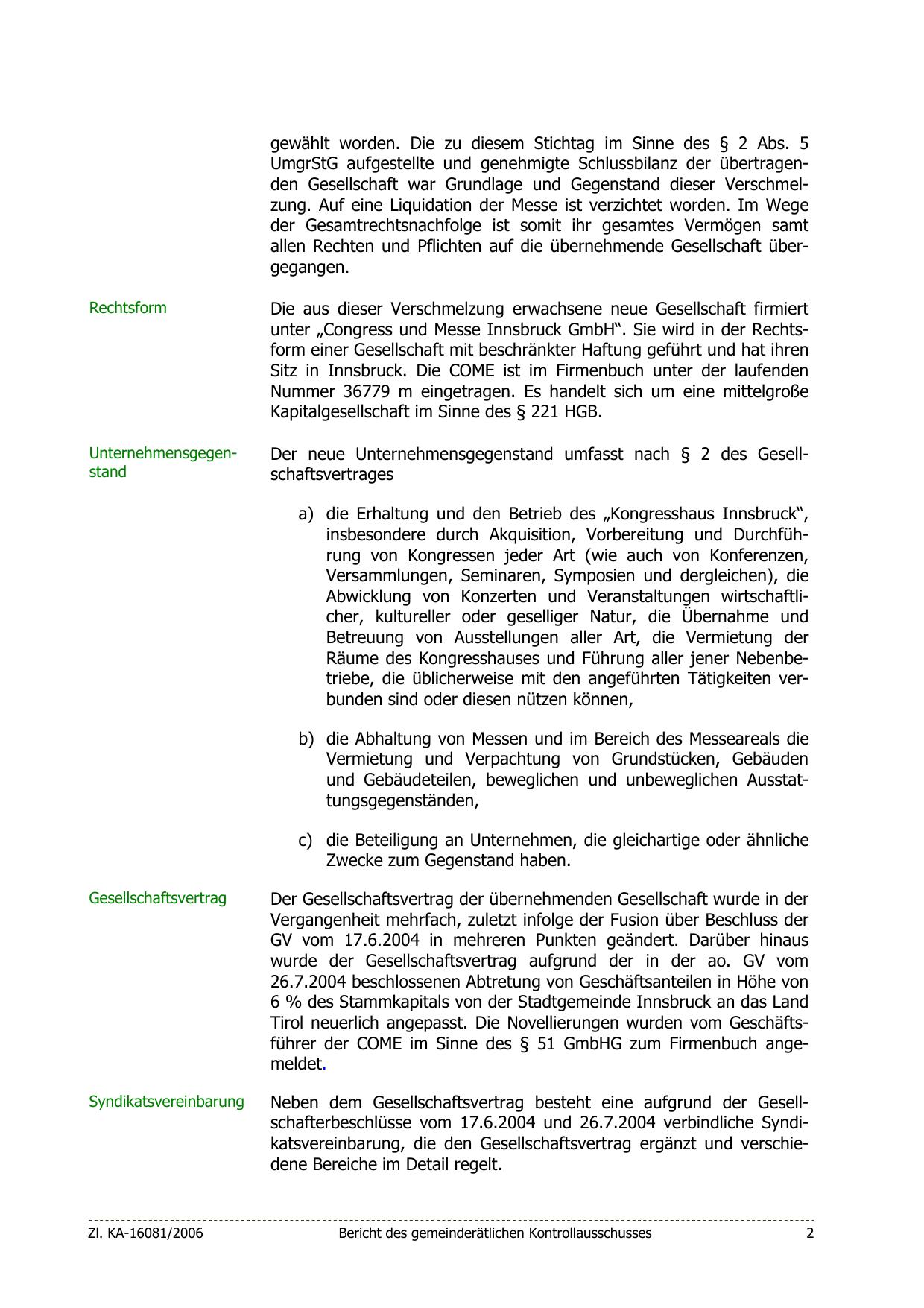 unter „Congress und Messe Innsbruck GmbH“. Sie wird in der Rechtsform einer Gesellschaft mit beschränkter Haftung geführt und hat ihren