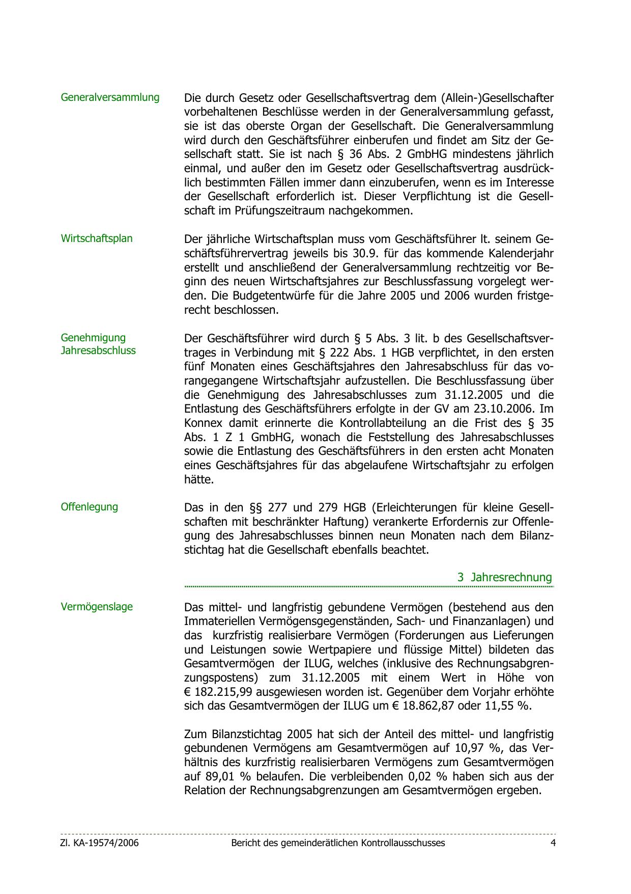 erstellt und anschließend der Generalversammlung rechtzeitig vor Beginn des neuen Wirtschaftsjahres zur Beschlussfassung vorgelegt werden. Die Budgetentwürfe für die Jahre 2005 und 2006 wurden fristgerecht beschlossen.