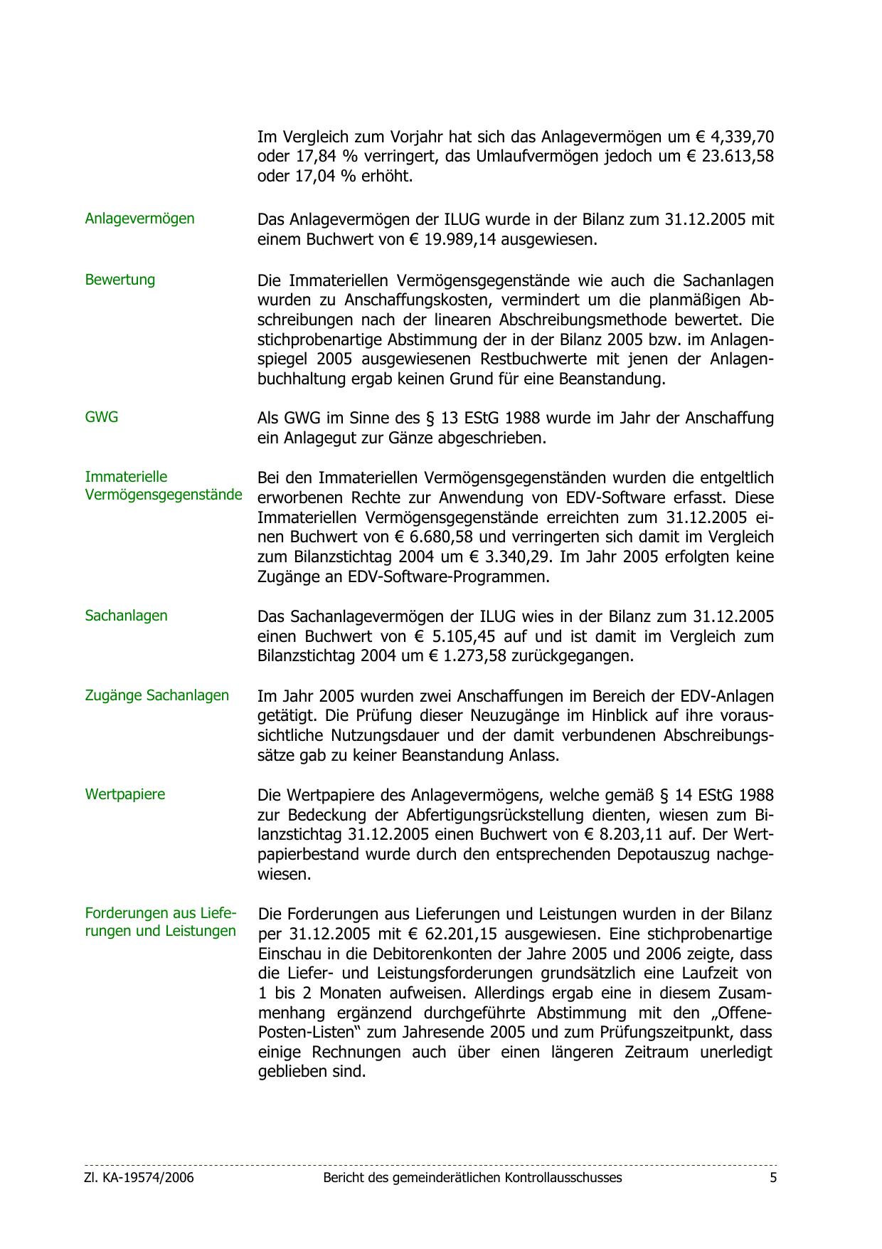Das Anlagevermögen der ILUG wurde in der Bilanz zum 31.12.2005 mit