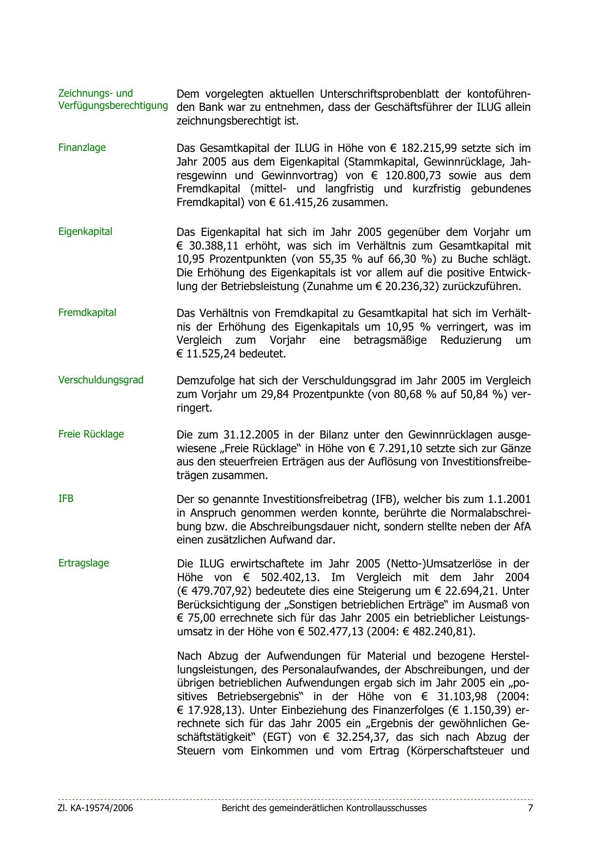 Die zum 31.12.2005 in der Bilanz unter den Gewinnrücklagen ausgewiesene „Freie Rücklage“ in Höhe von € 7.291,10 setzte sich zur Gänze