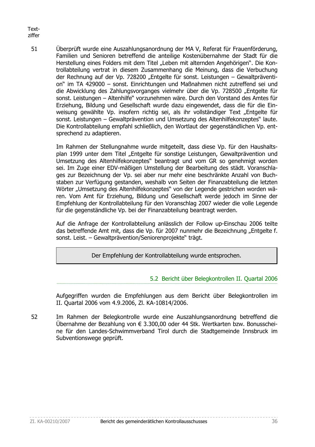 5.2 Bericht über Belegkontrollen II. Quartal 2006