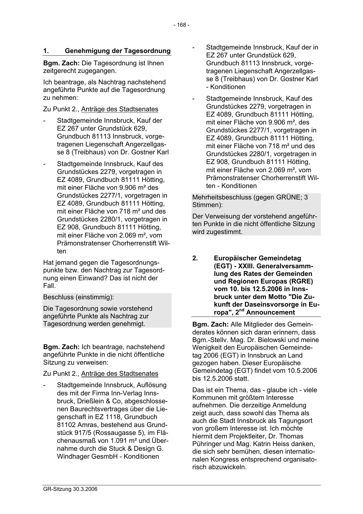 Bgm. Zach: Die Tagesordnung ist Ihnen