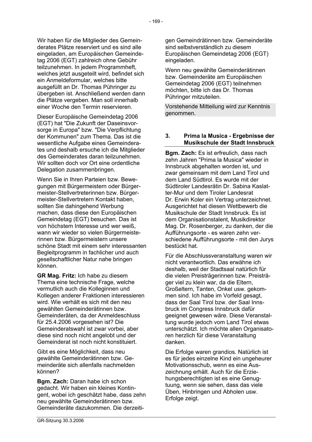 Gemeinderäte dazukommen. Die derzeitiGR-Sitzung 30.3.2006