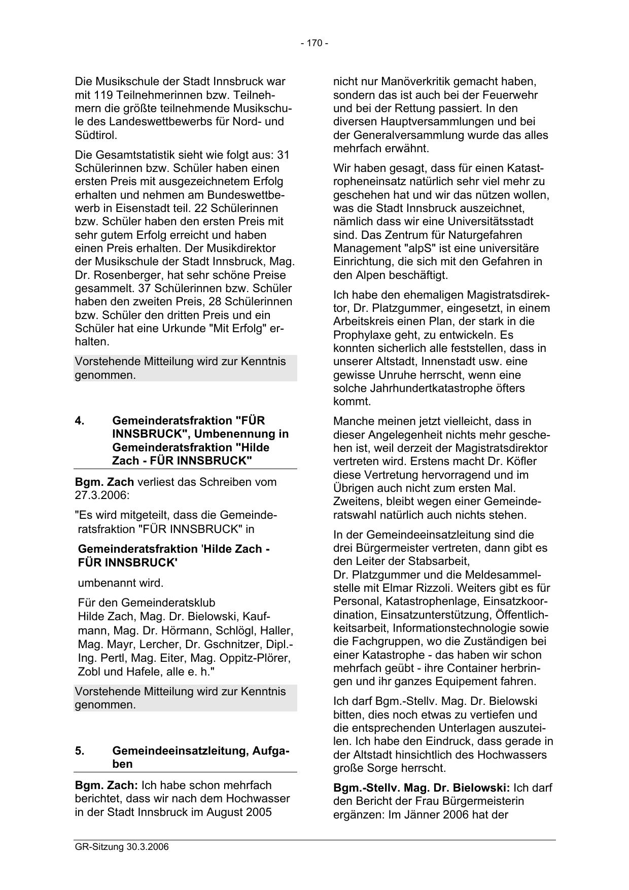 Ich habe den ehemaligen Magistratsdirektor, Dr. Platzgummer, eingesetzt, in einem