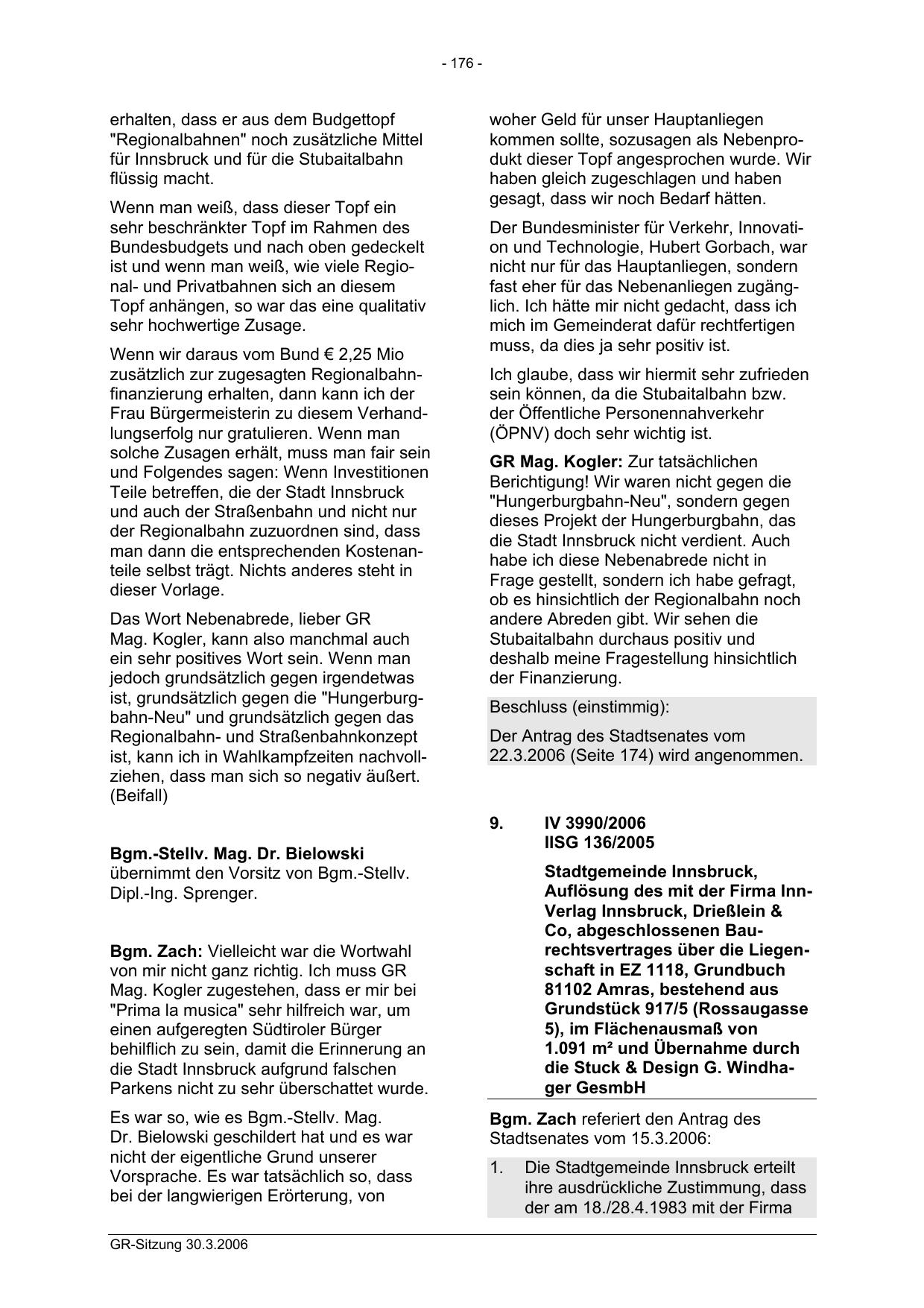 ist, grundsätzlich gegen die "Hungerburgbahn-Neu" und grundsätzlich gegen das