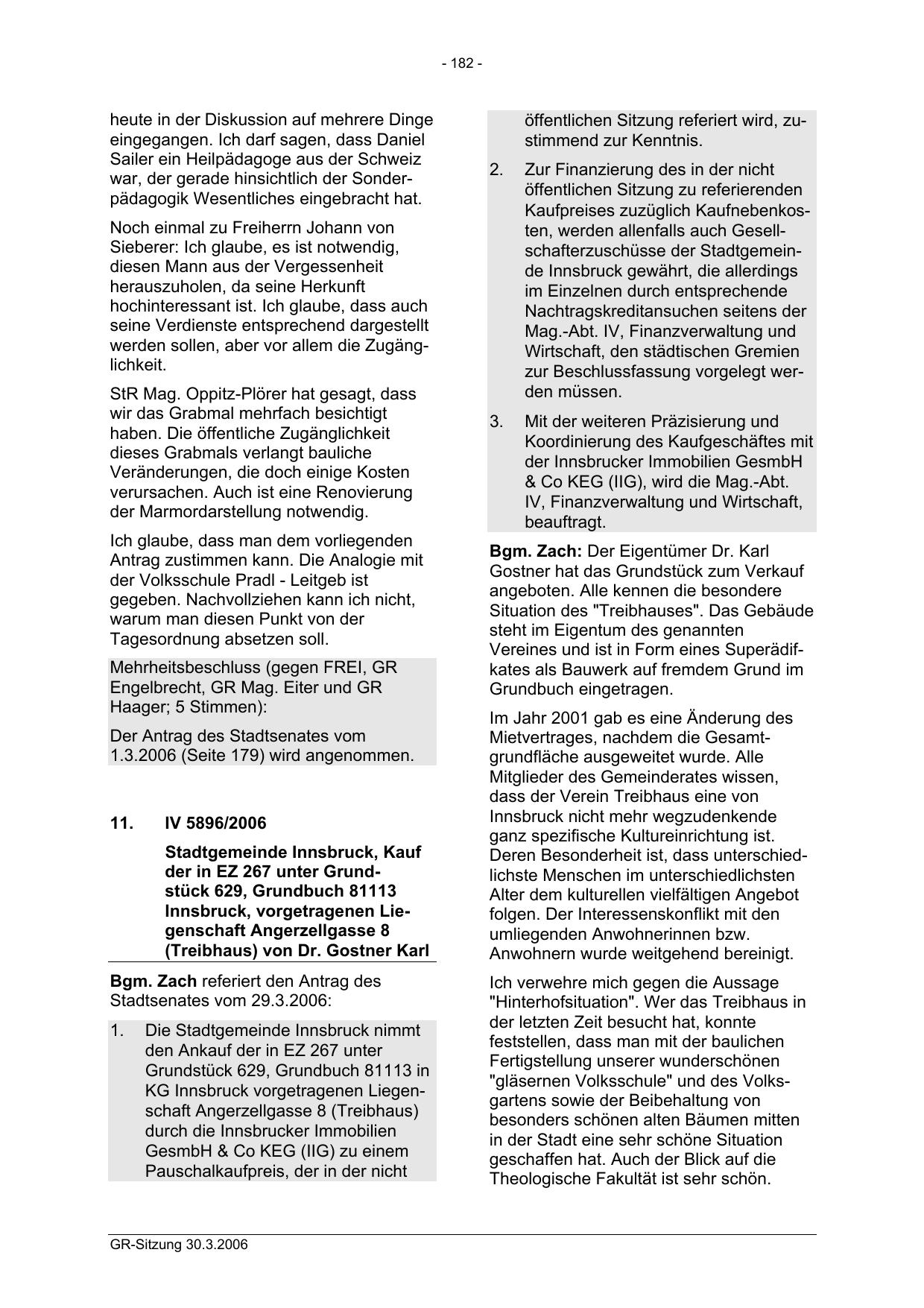 Innsbruck, vorgetragenen Liegenschaft Angerzellgasse 8