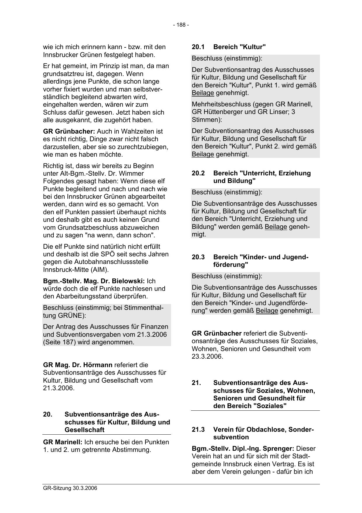und Subventionsvergaben vom 21.3.2006
