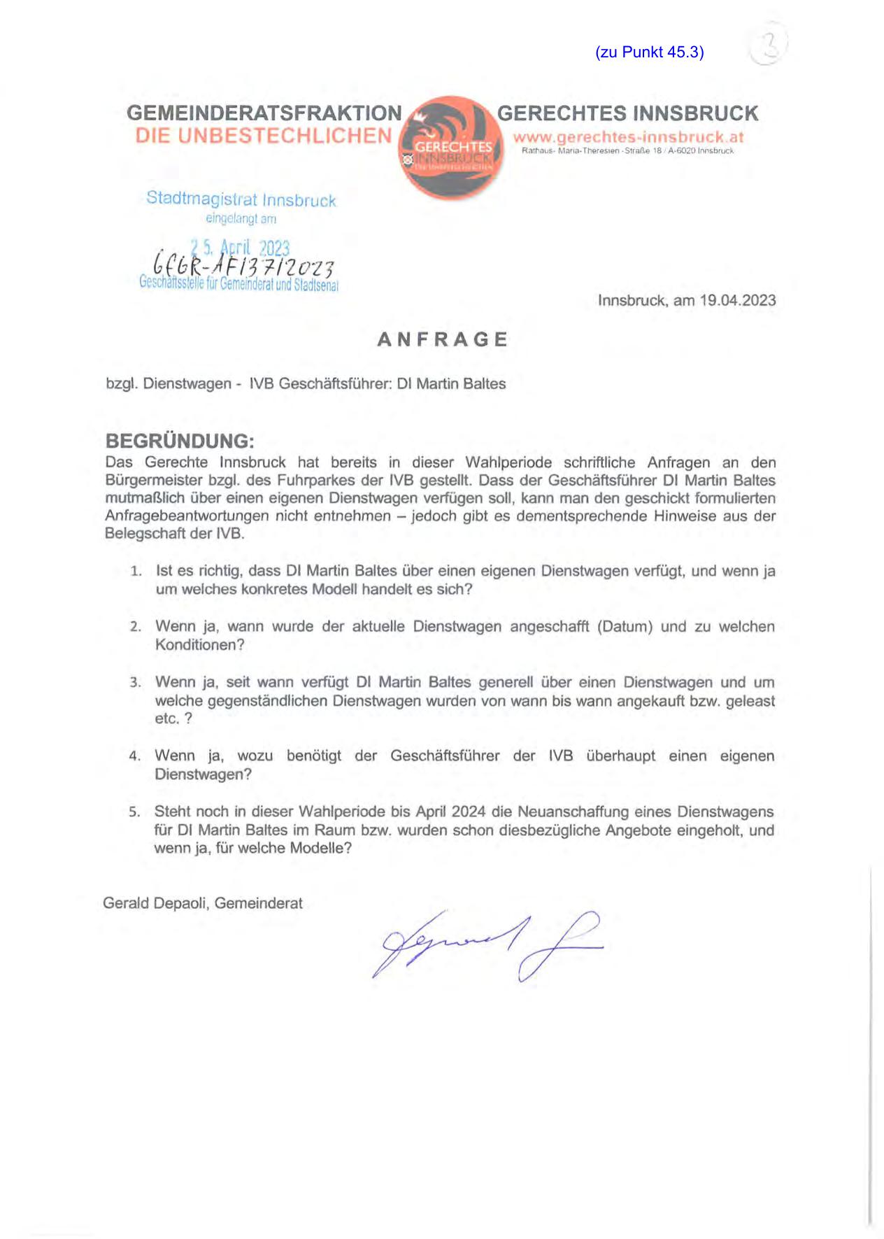 Das Gerechte Innsbruck hat bereits in dieser Wahlperiode schriftliche Anfragen an den