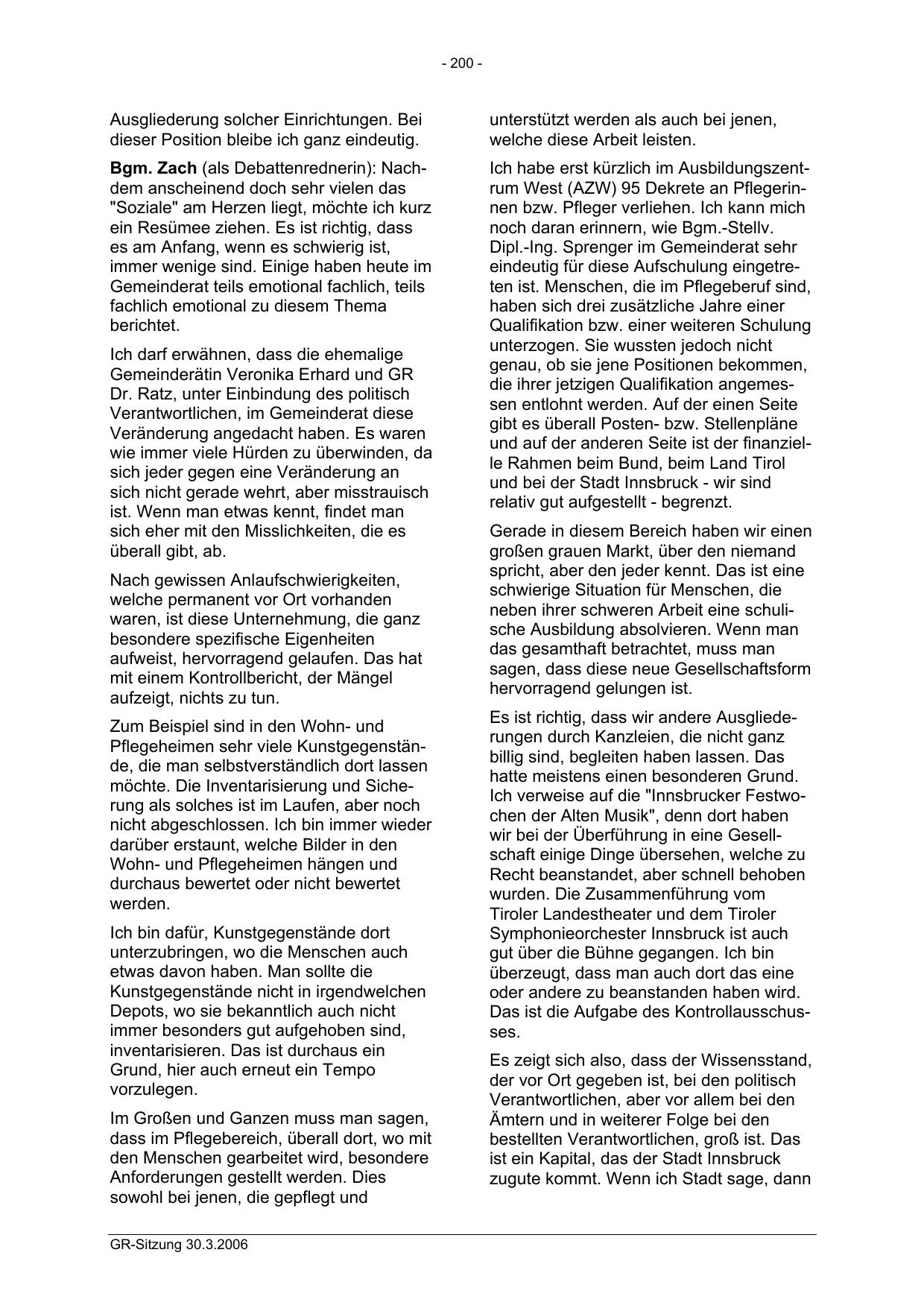 Bgm. Zach (als Debattenrednerin): Nachdem anscheinend doch sehr vielen das
