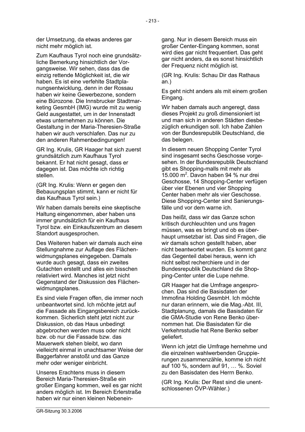 haben wir nur einen kleinen NebeneinGR-Sitzung 30.3.2006