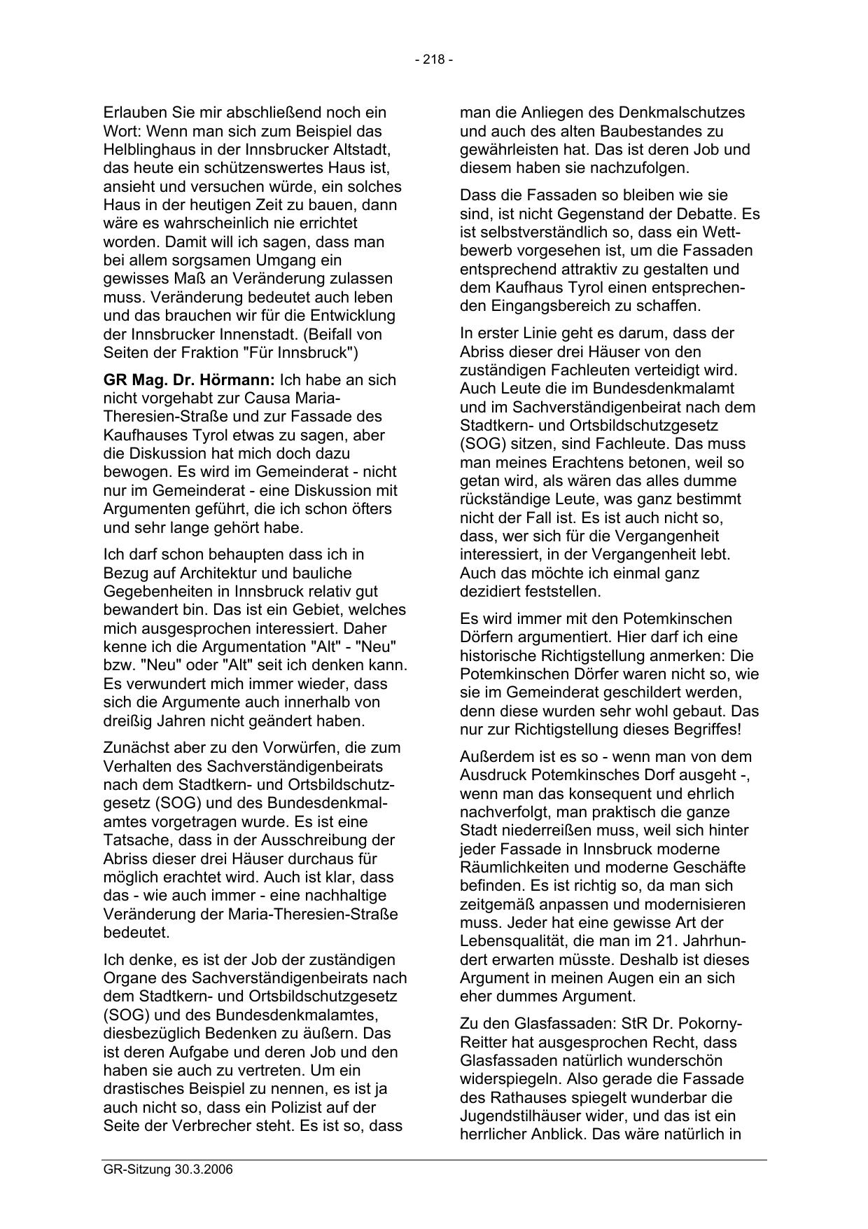 nicht vorgehabt zur Causa MariaTheresien-Straße und zur Fassade des