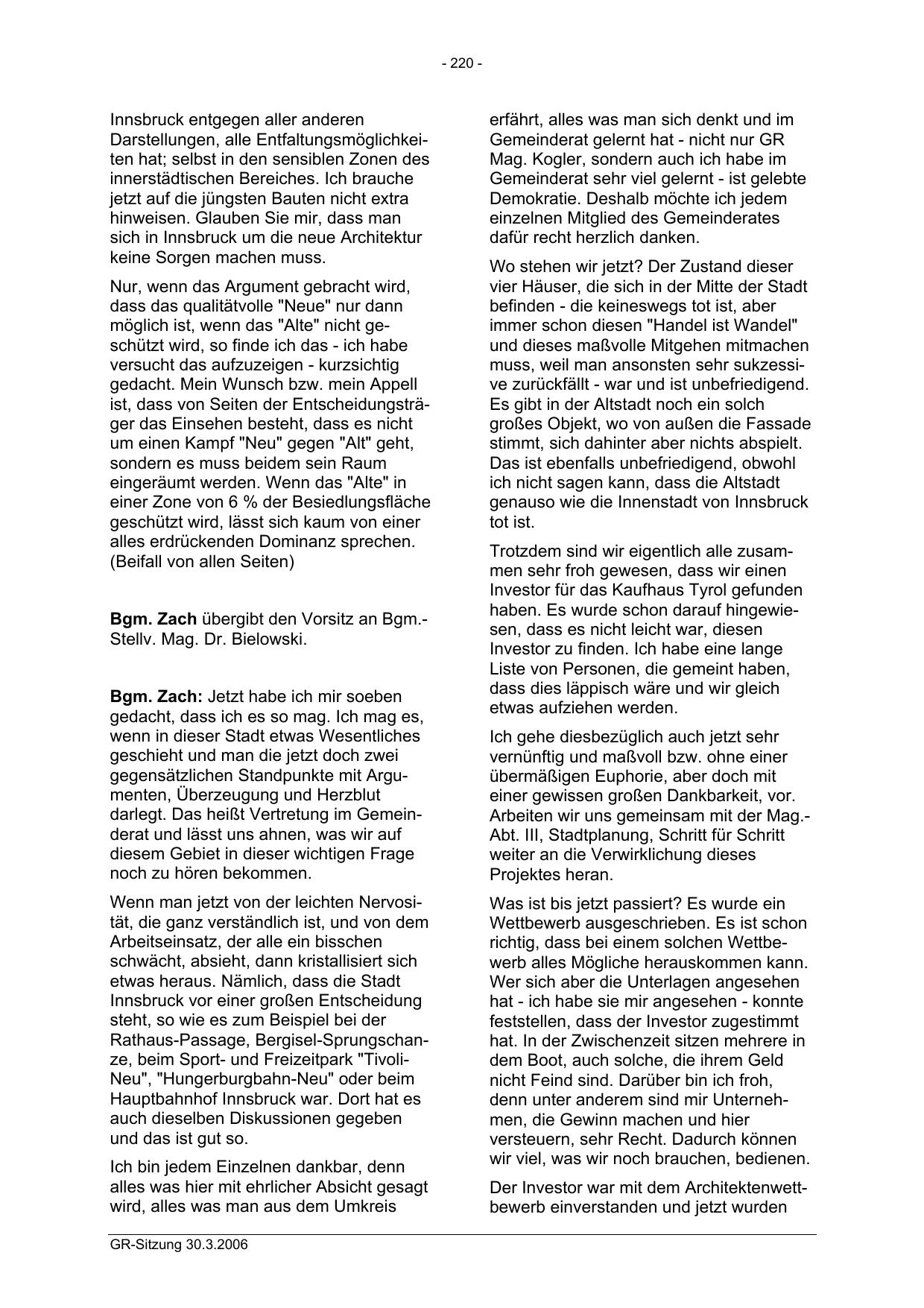 Bgm. Zach übergibt den Vorsitz an Bgm.Stellv. Mag. Dr. Bielowski.