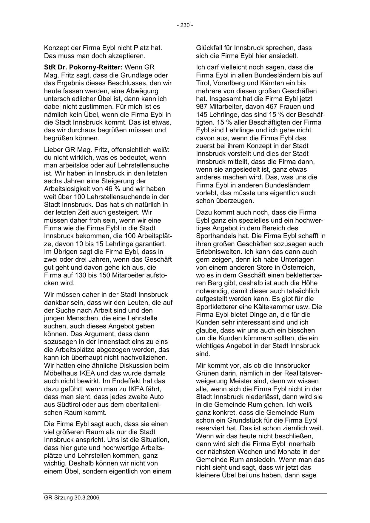 Innsbruck bekommen, die 100 Arbeitsplätze, davon 10 bis 15 Lehrlinge garantiert.