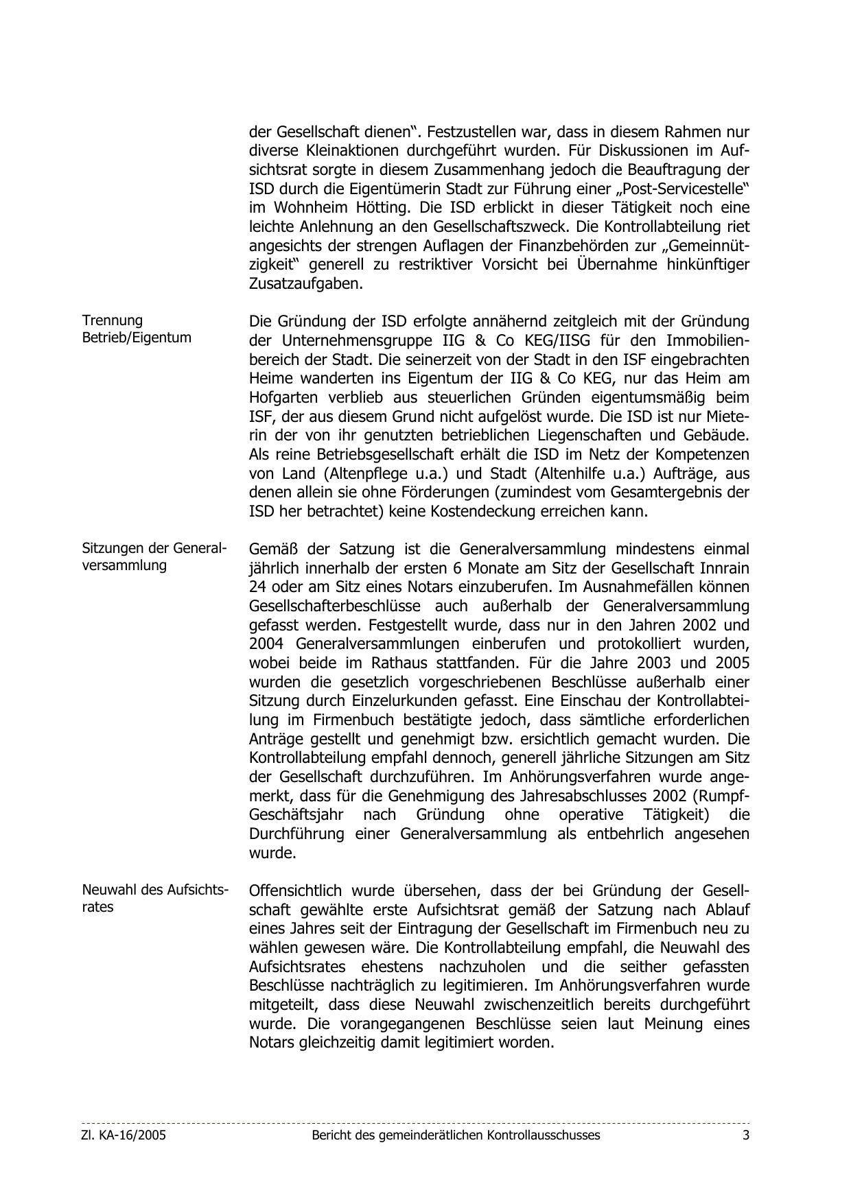 der Unternehmensgruppe IIG & Co KEG/IISG für den Immobilienbereich der Stadt. Die seinerzeit von der Stadt in den ISF eingebrachten