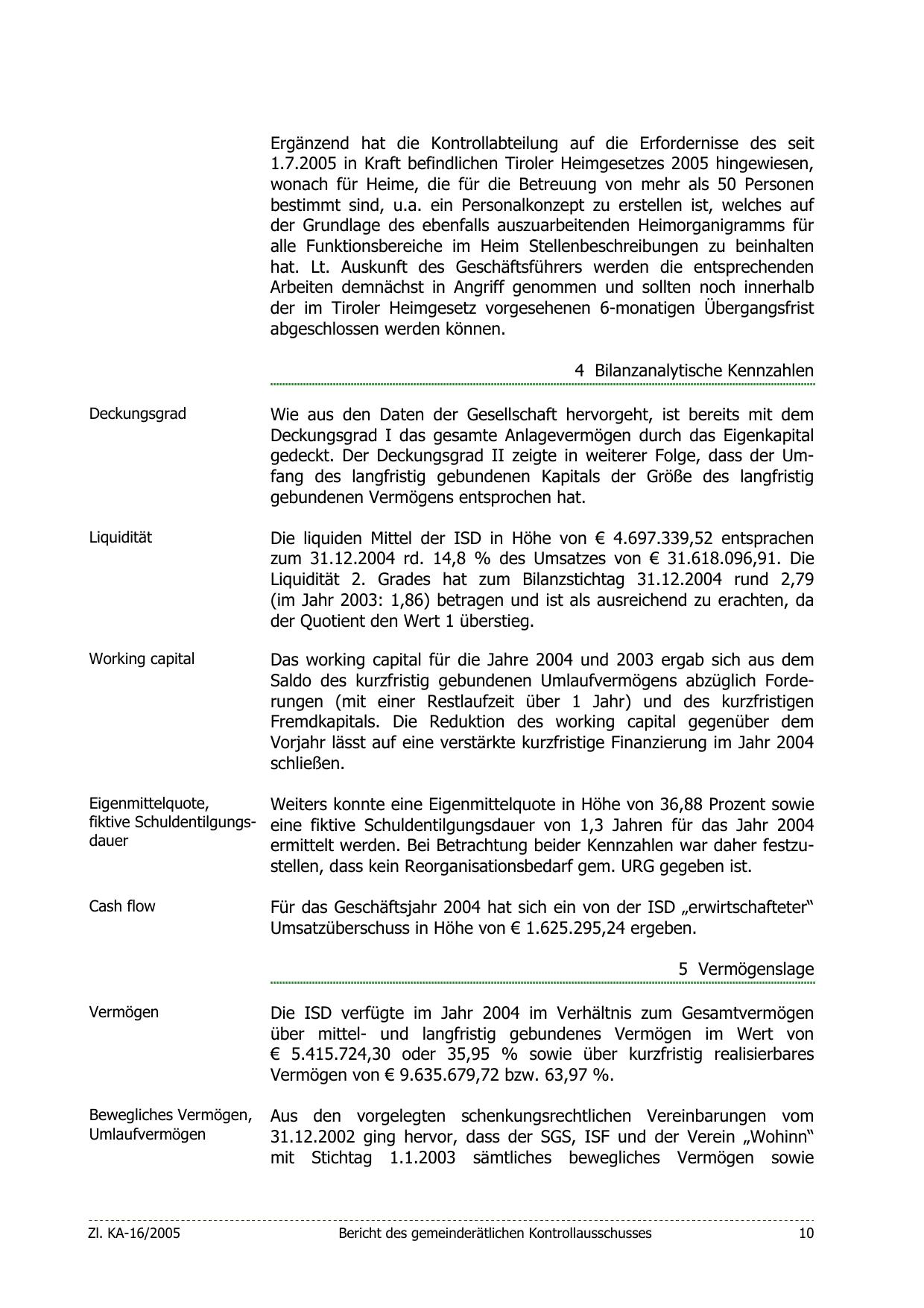 Die liquiden Mittel der ISD in Höhe von € 4.697.339,52 entsprachen