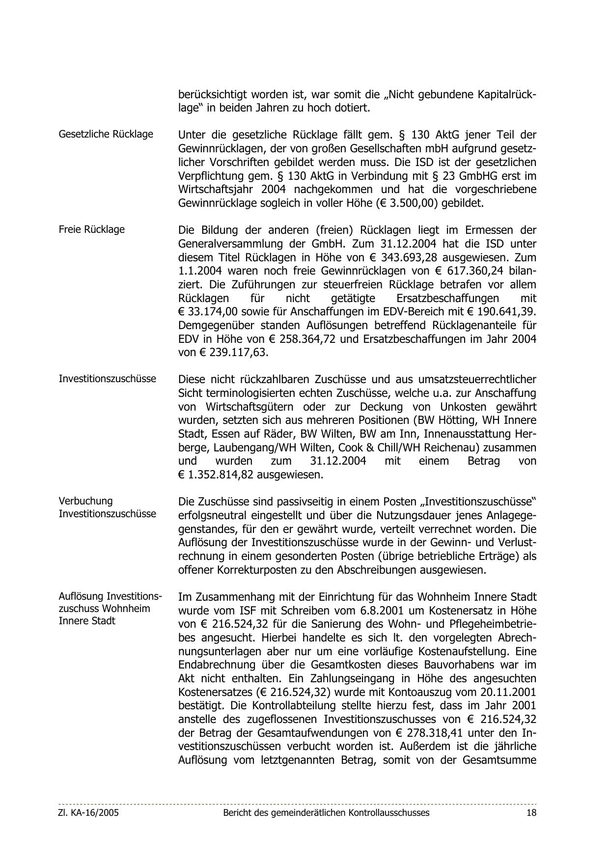 1.1.2004 waren noch freie Gewinnrücklagen von € 617.360,24 bilanziert. Die Zuführungen zur steuerfreien Rücklage betrafen vor allem