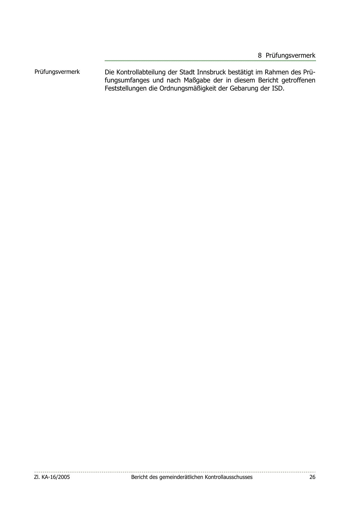 Die Kontrollabteilung der Stadt Innsbruck bestätigt im Rahmen des Prüfungsumfanges und nach Maßgabe der in diesem Bericht getroffenen