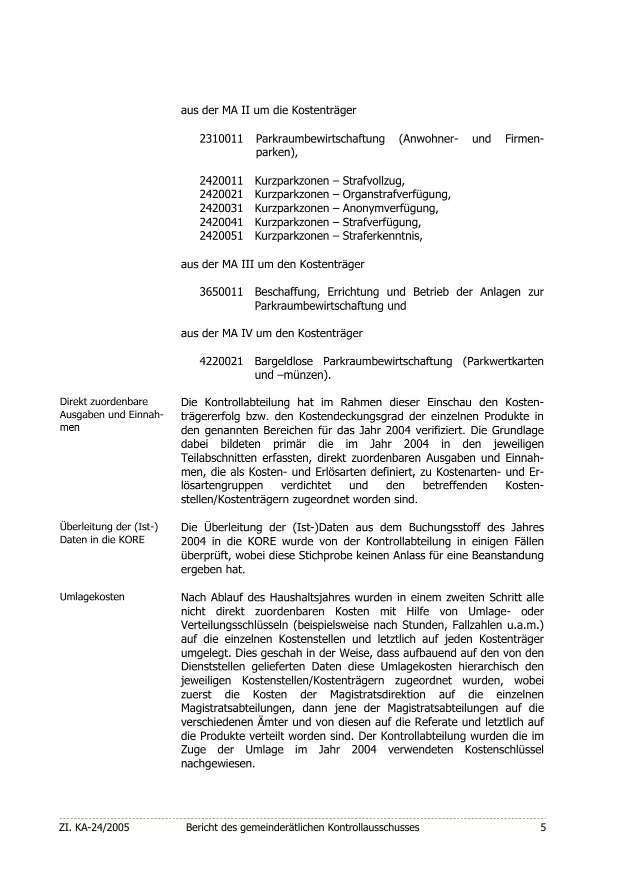 zuerst die Kosten der Magistratsdirektion auf die einzelnen