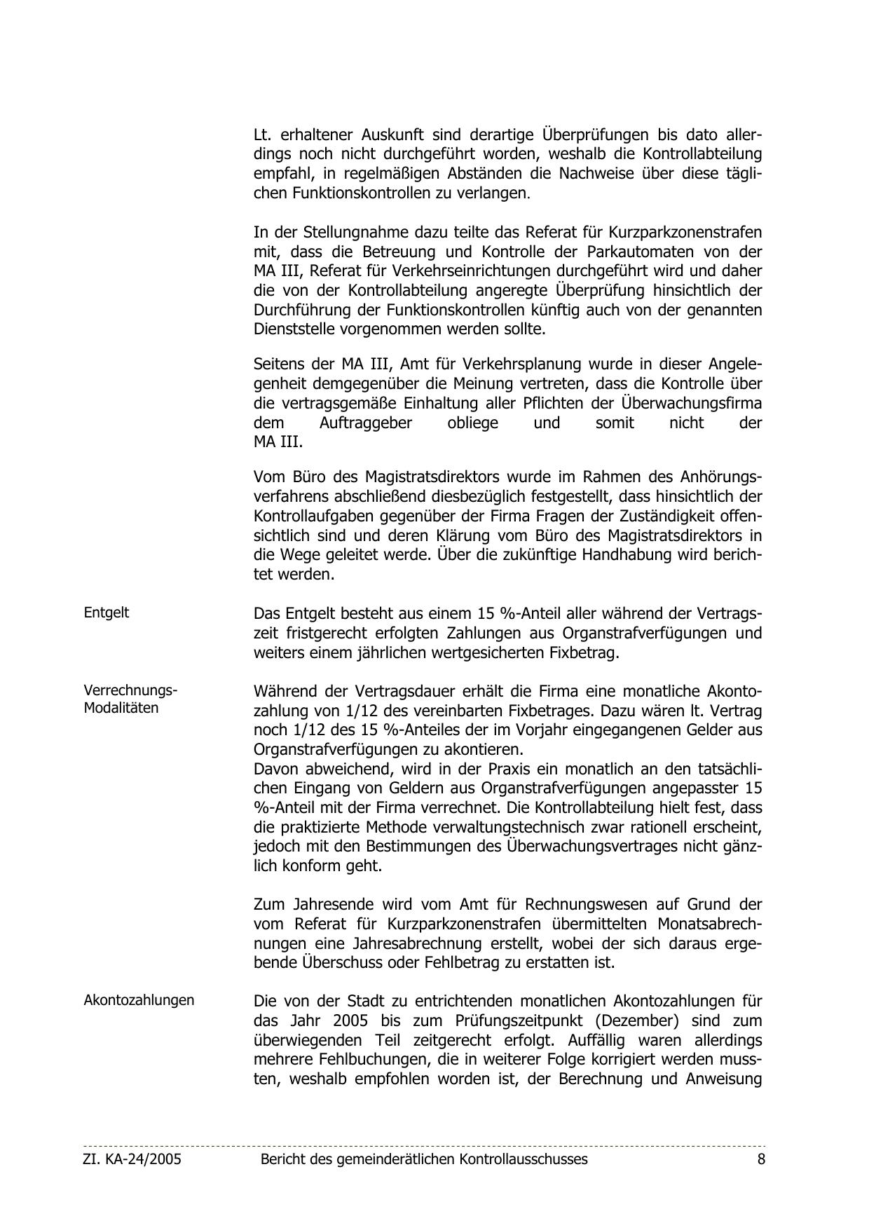 Seitens der MA III, Amt für Verkehrsplanung wurde in dieser Angelegenheit demgegenüber die Meinung vertreten, dass die Kontrolle über