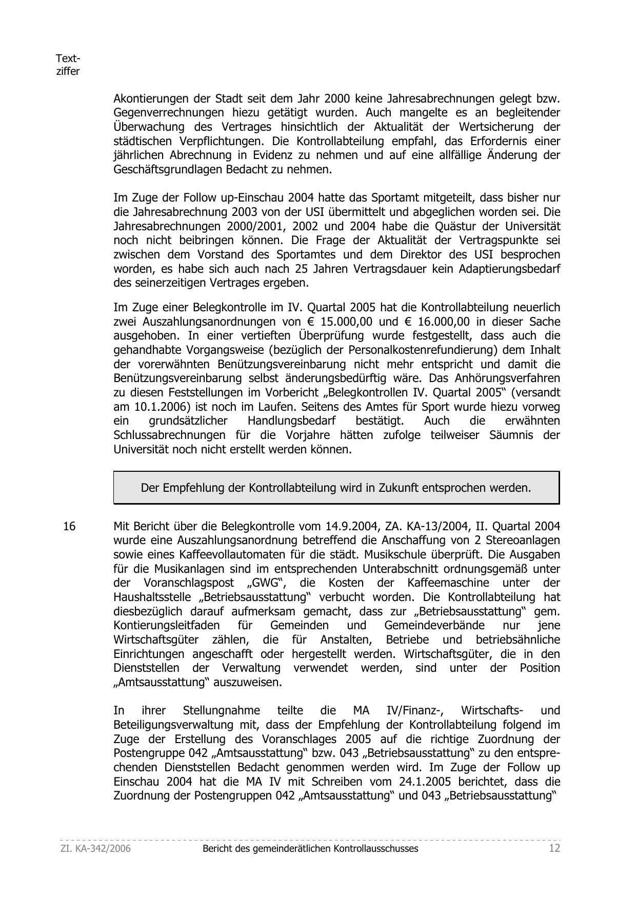 städtischen Verpflichtungen. Die Kontrollabteilung empfahl, das Erfordernis einer