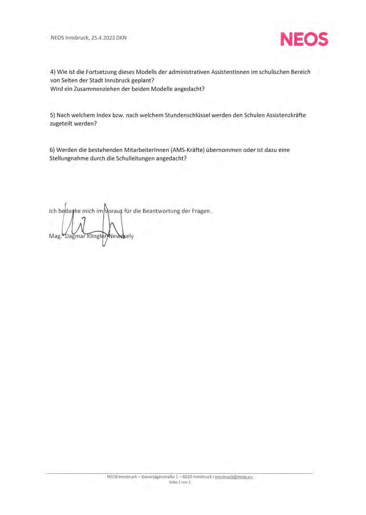 NEOS Innsbruck- Kaiserjägerstraße 1- 6020 Inn sbruck I inn sbru ck@neos.eu