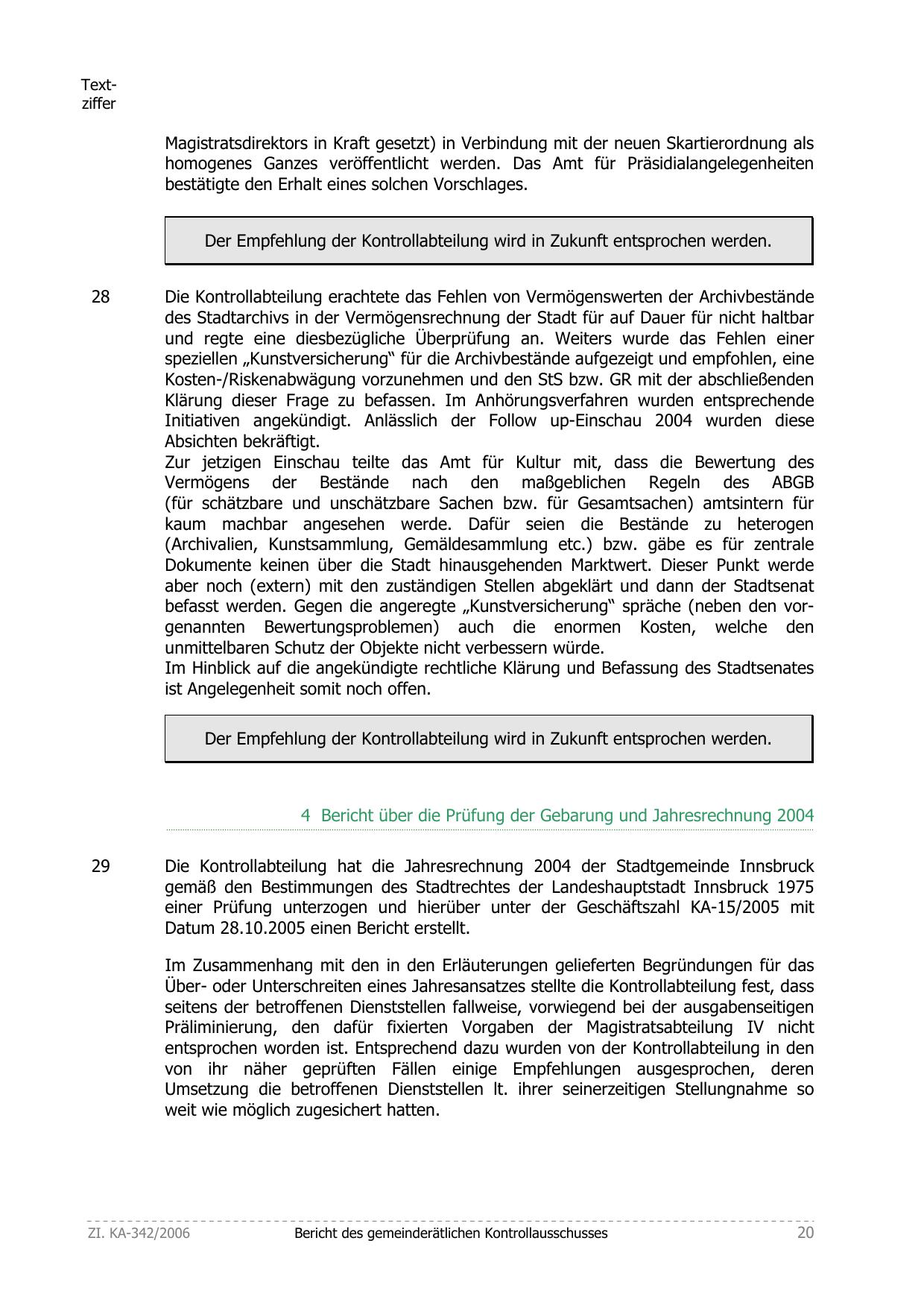 Die Kontrollabteilung hat die Jahresrechnung 2004 der Stadtgemeinde Innsbruck