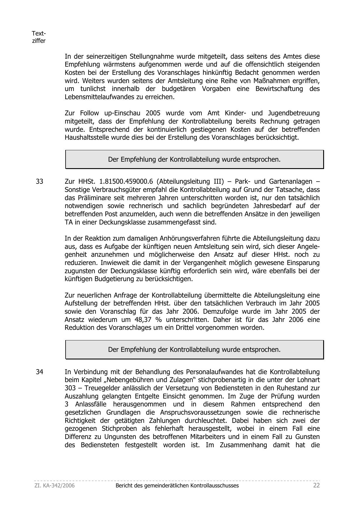 In Verbindung mit der Behandlung des Personalaufwandes hat die Kontrollabteilung