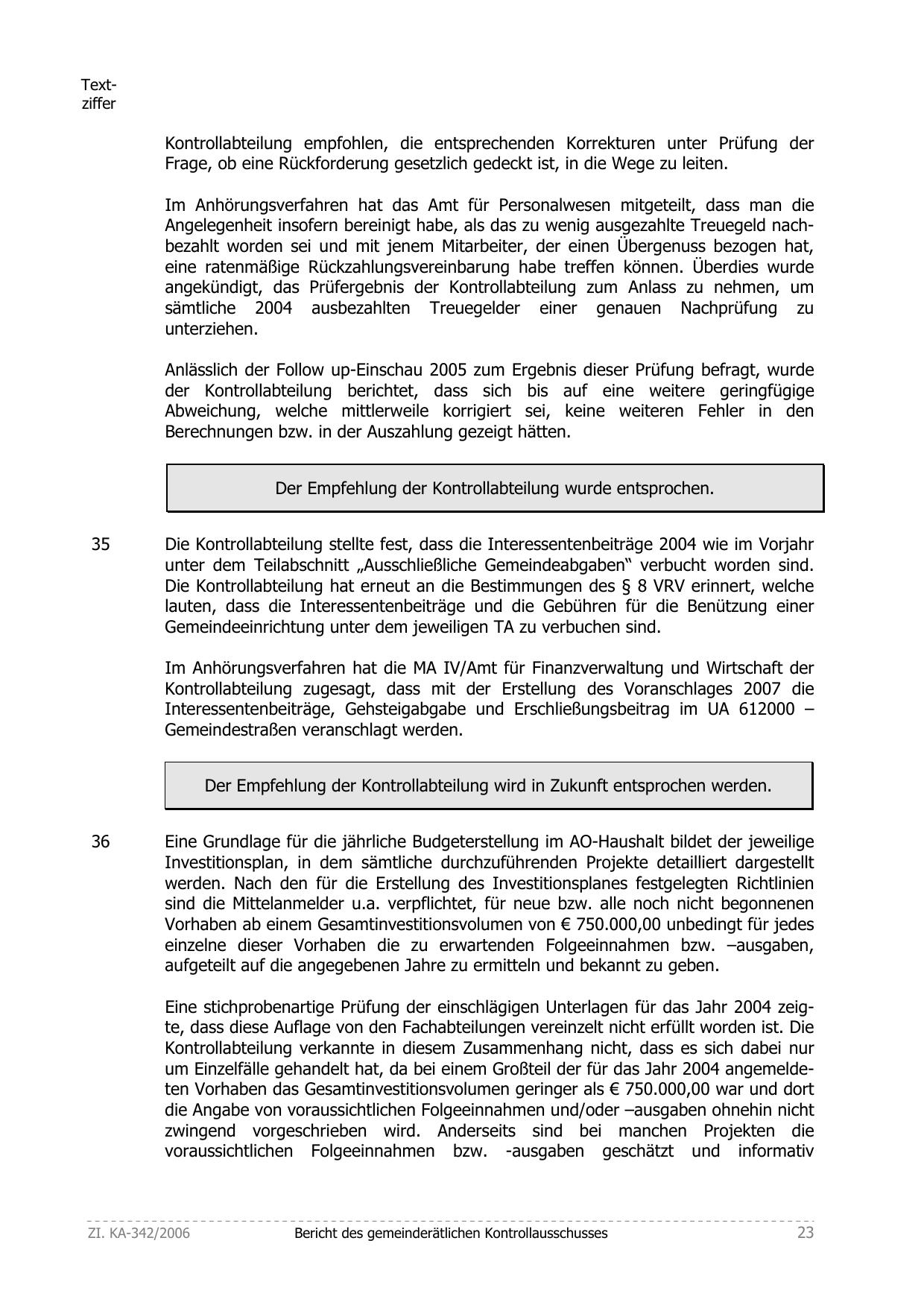 Kontrollabteilung zugesagt, dass mit der Erstellung des Voranschlages 2007 die