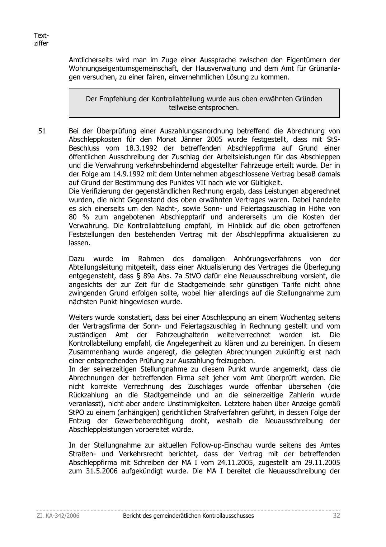 Abschleppkosten für den Monat Jänner 2005 wurde festgestellt, dass mit StSBeschluss vom 18.3.1992 der betreffenden Abschleppfirma auf Grund einer