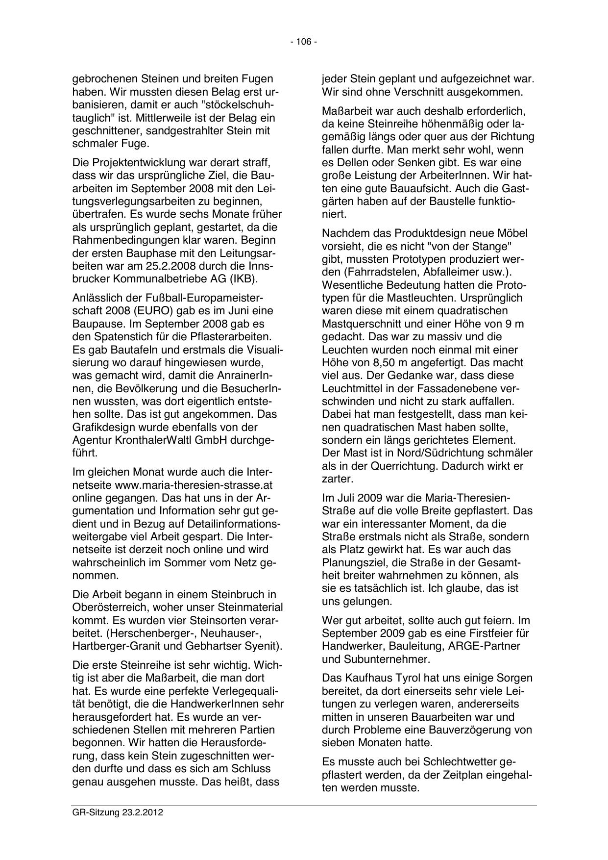 Im Juli 2009 war die Maria-TheresienStraße auf die volle Breite gepflastert. Das
