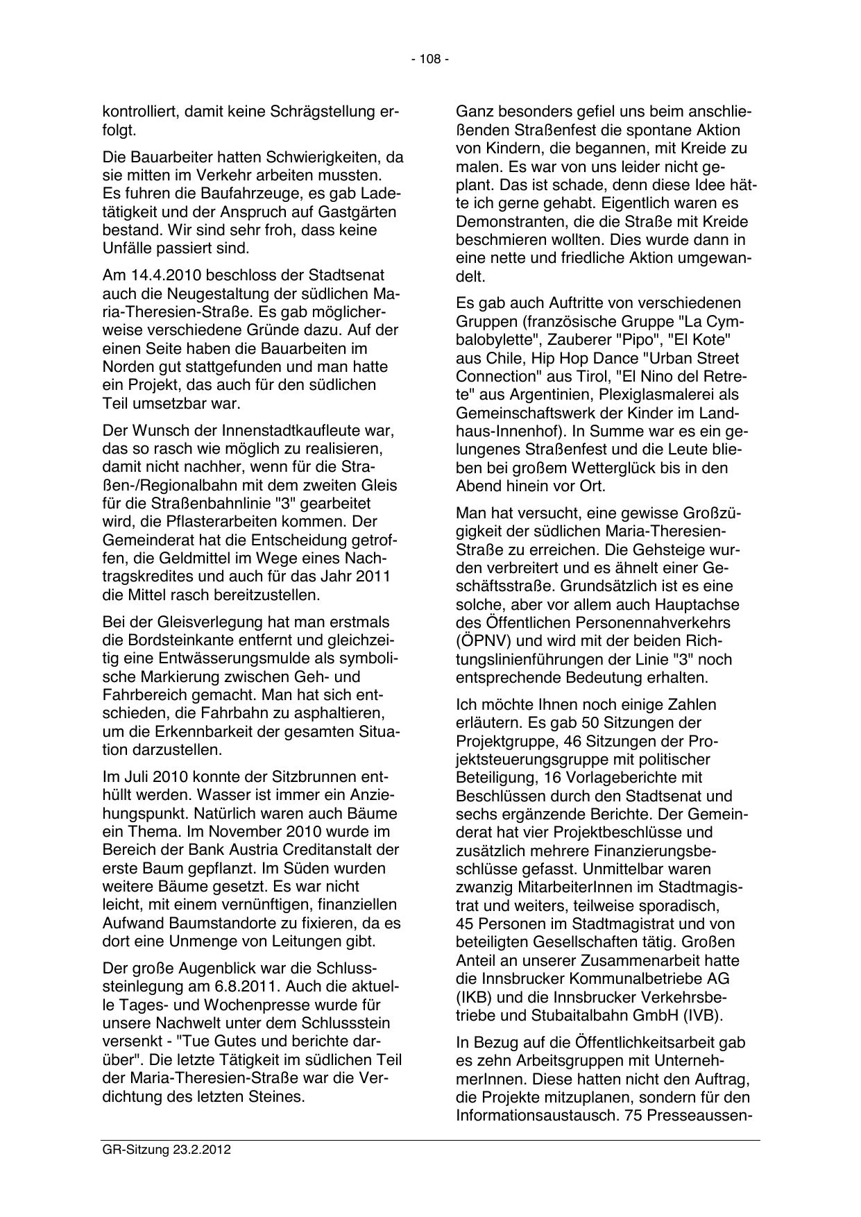 auch die Neugestaltung der südlichen Maria-Theresien-Straße. Es gab möglicherweise verschiedene Gründe dazu. Auf der