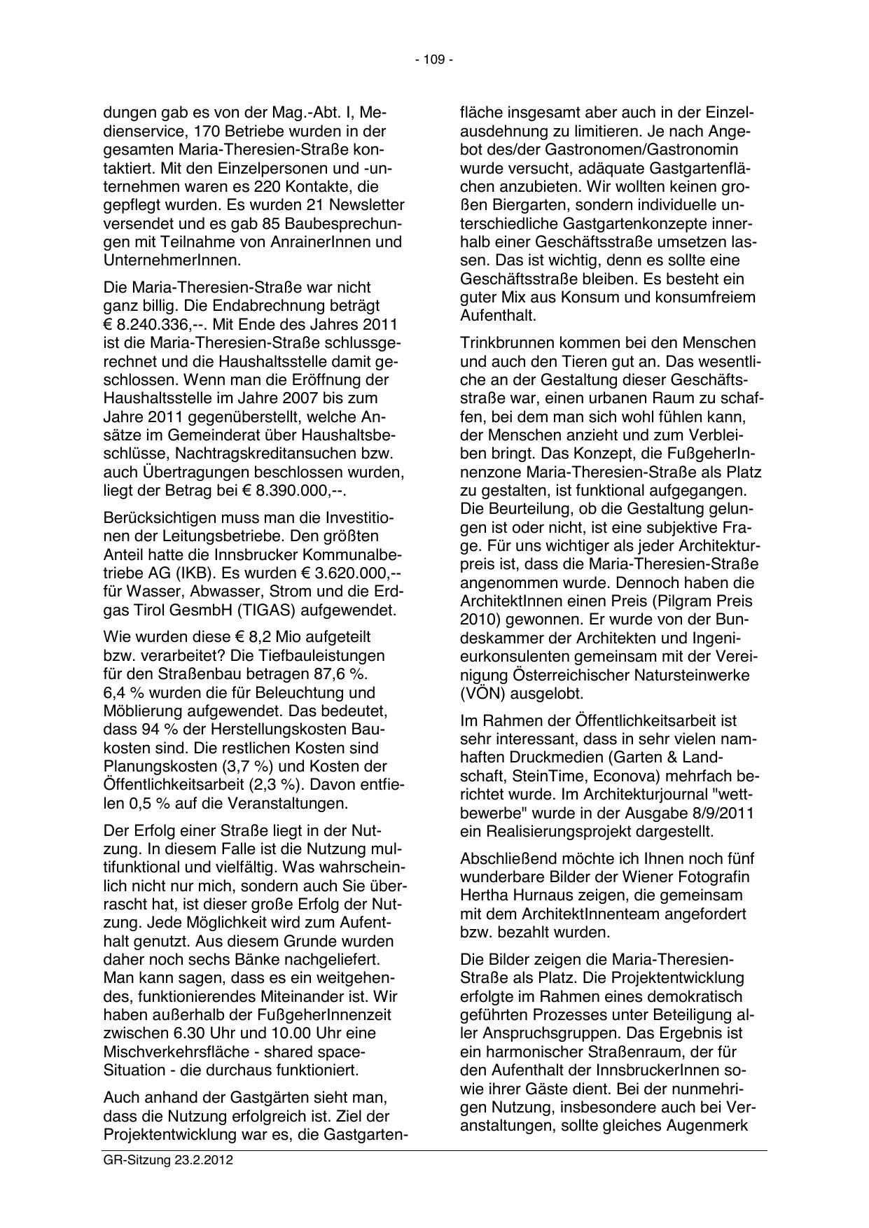 Projektentwicklung war es, die GastgartenGR-Sitzung 23.2.2012