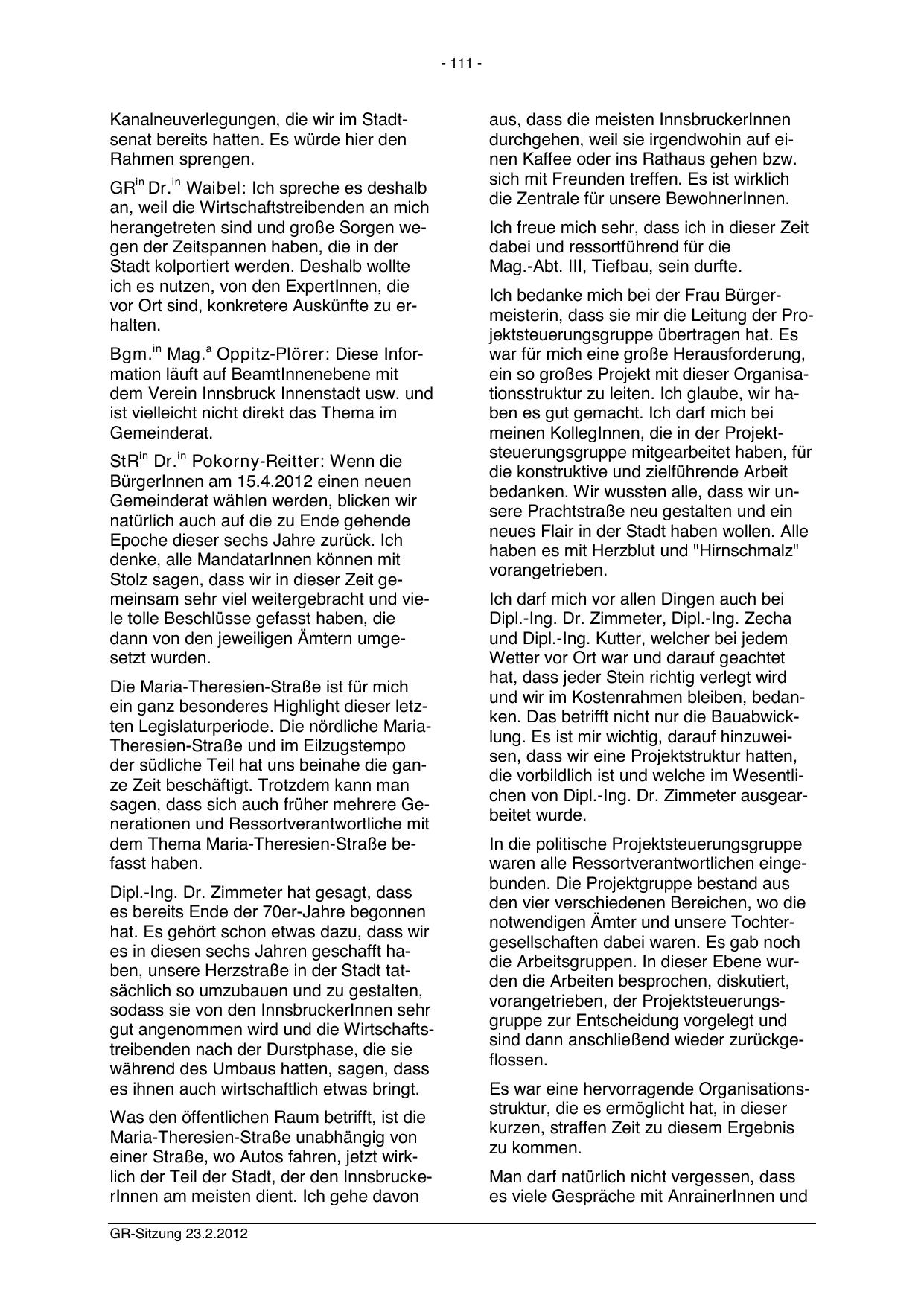 ein ganz besonderes Highlight dieser letzten Legislaturperiode. Die nördliche MariaTheresien-Straße und im Eilzugstempo