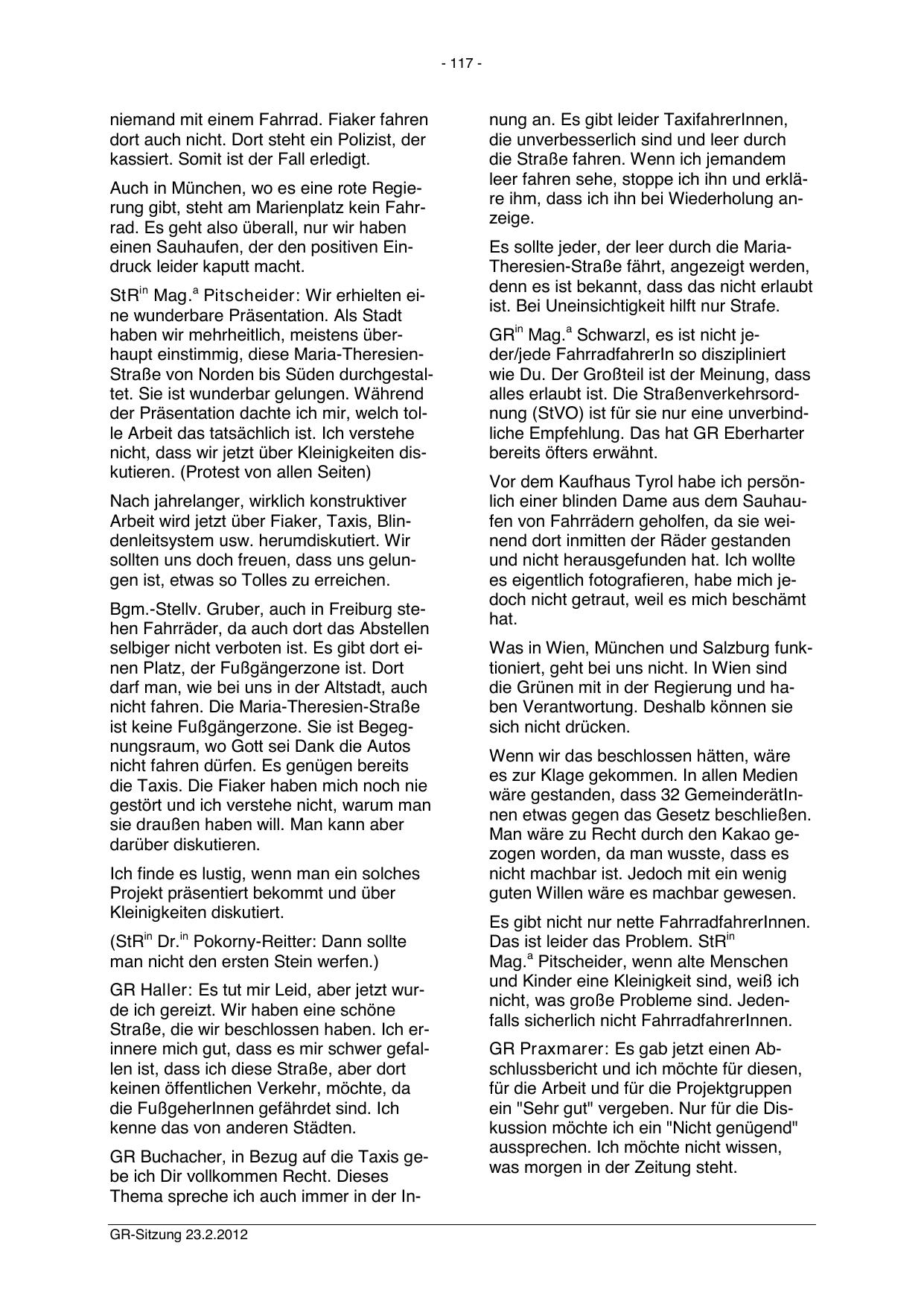 Bgm.-Stellv. Gruber, auch in Freiburg stehen Fahrräder, da auch dort das Abstellen